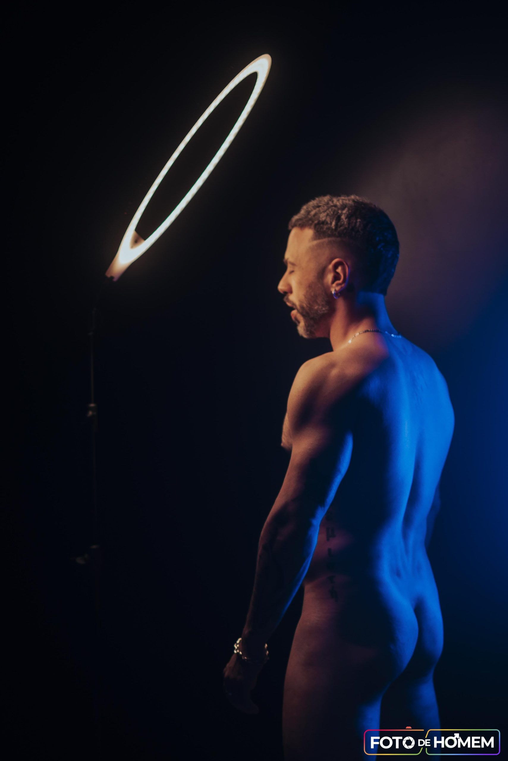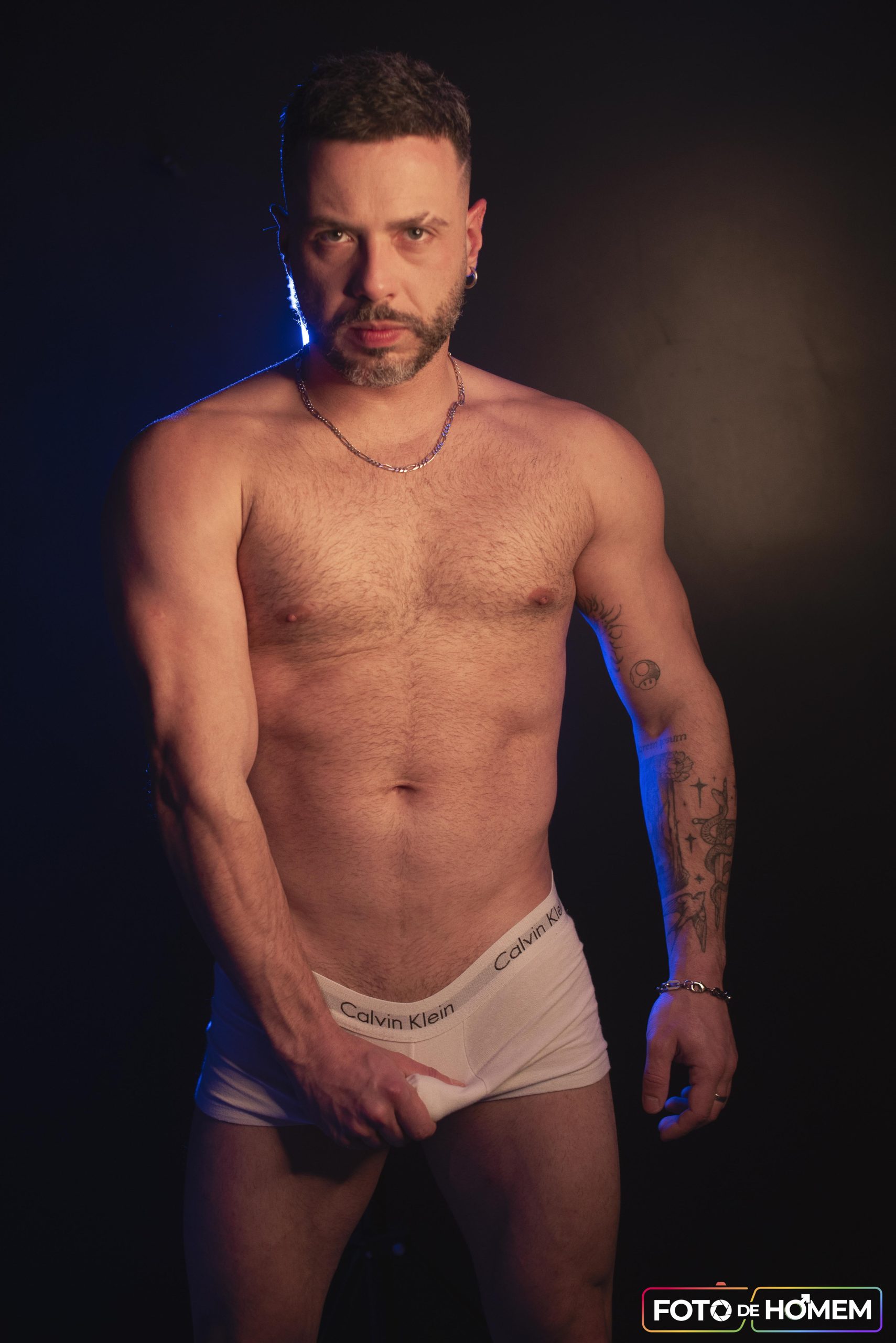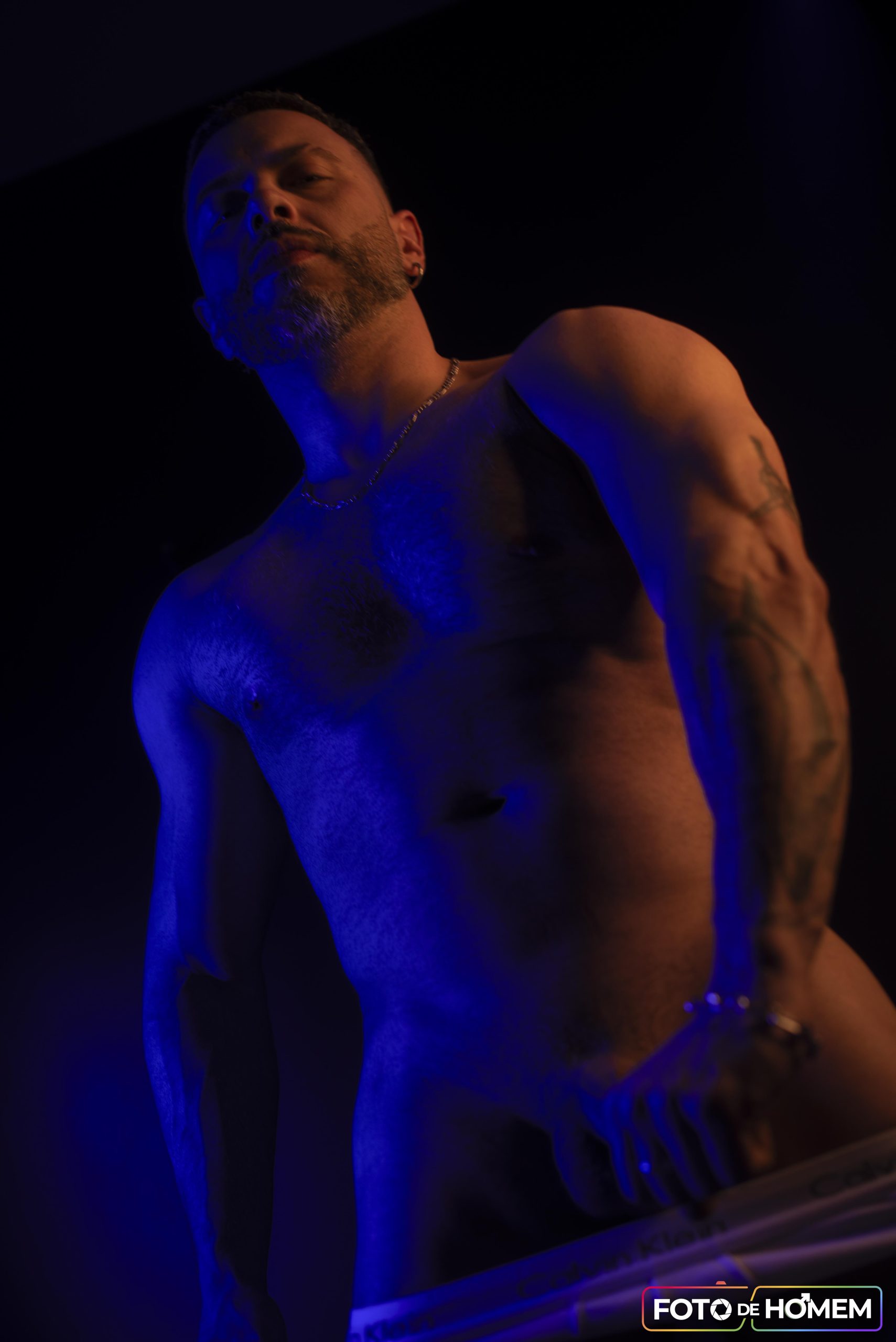 André afirma que desconstruir realidades é o primeiro passo para criar novas formas de ver e viver o mundo e por isso topou a experiência de posar nu para o Foto de Homem. “Fazer o ensaio com o Eberson foi uma vivência de entrega e autodescoberta. Mais do que posar diante da câmera, foi me permitir estar vulnerável, despido de máscaras e camadas, em um espaço de confiança criado junto a ele”.
