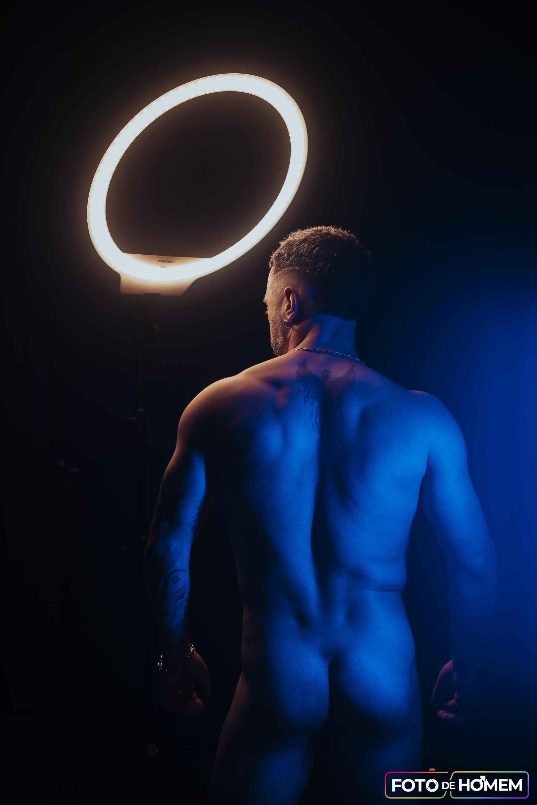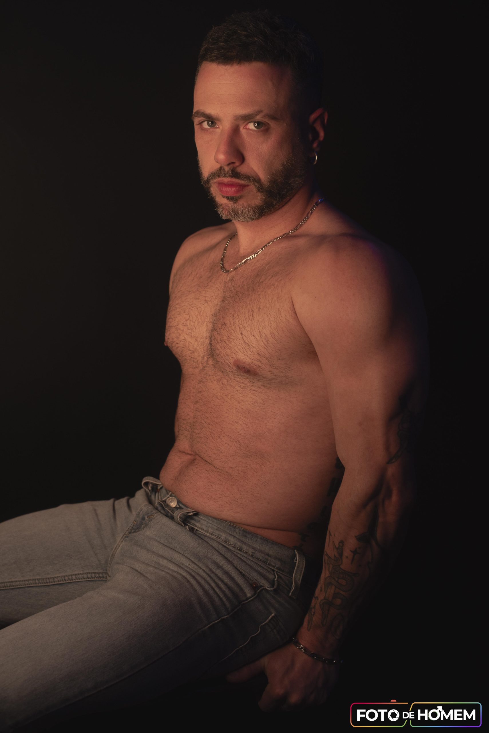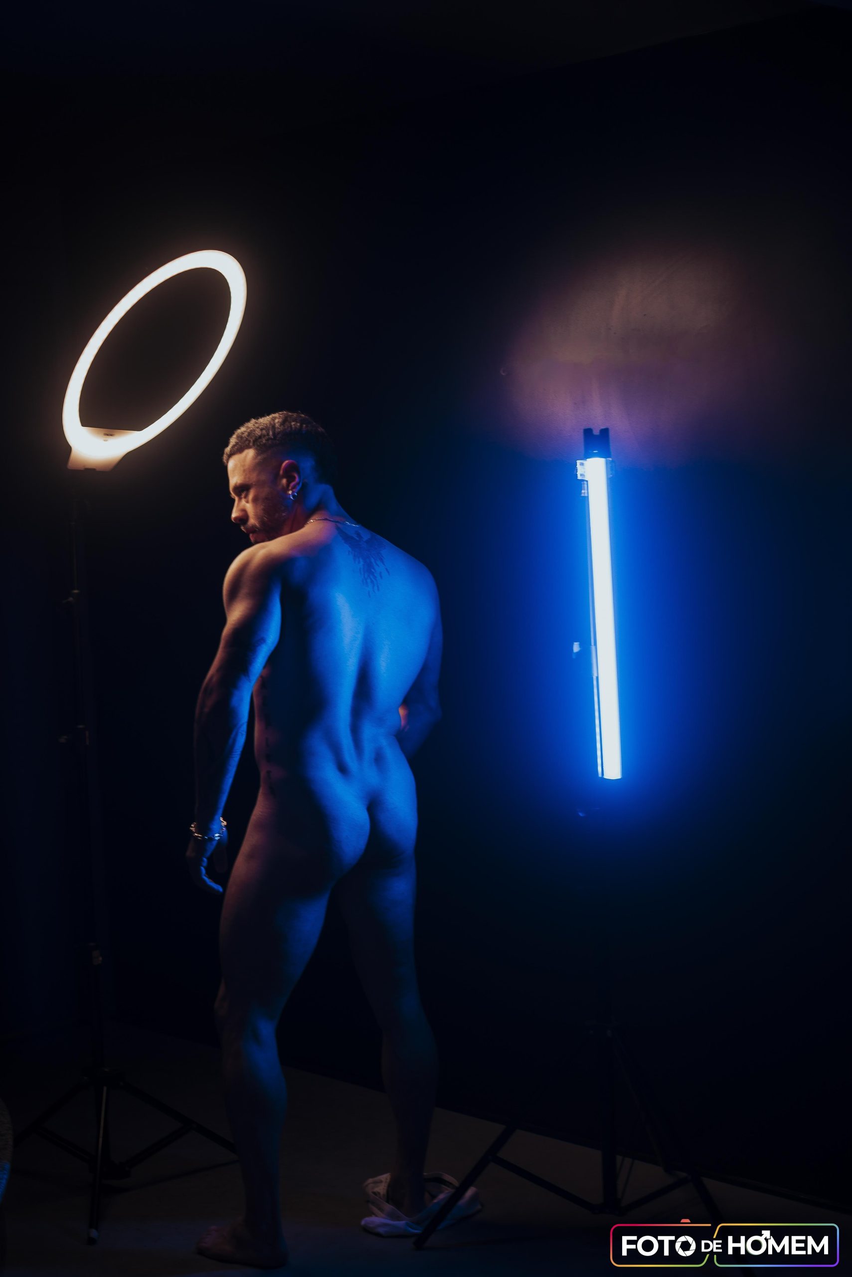 André afirma que desconstruir realidades é o primeiro passo para criar novas formas de ver e viver o mundo e por isso topou a experiência de posar nu para o Foto de Homem. “Fazer o ensaio com o Eberson foi uma vivência de entrega e autodescoberta. Mais do que posar diante da câmera, foi me permitir estar vulnerável, despido de máscaras e camadas, em um espaço de confiança criado junto a ele”.
