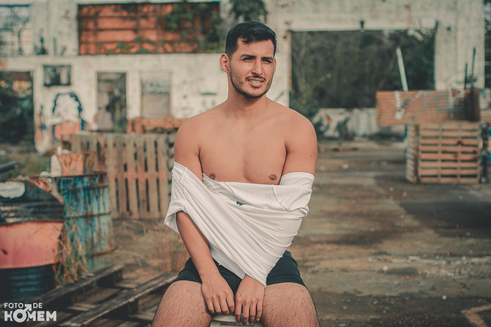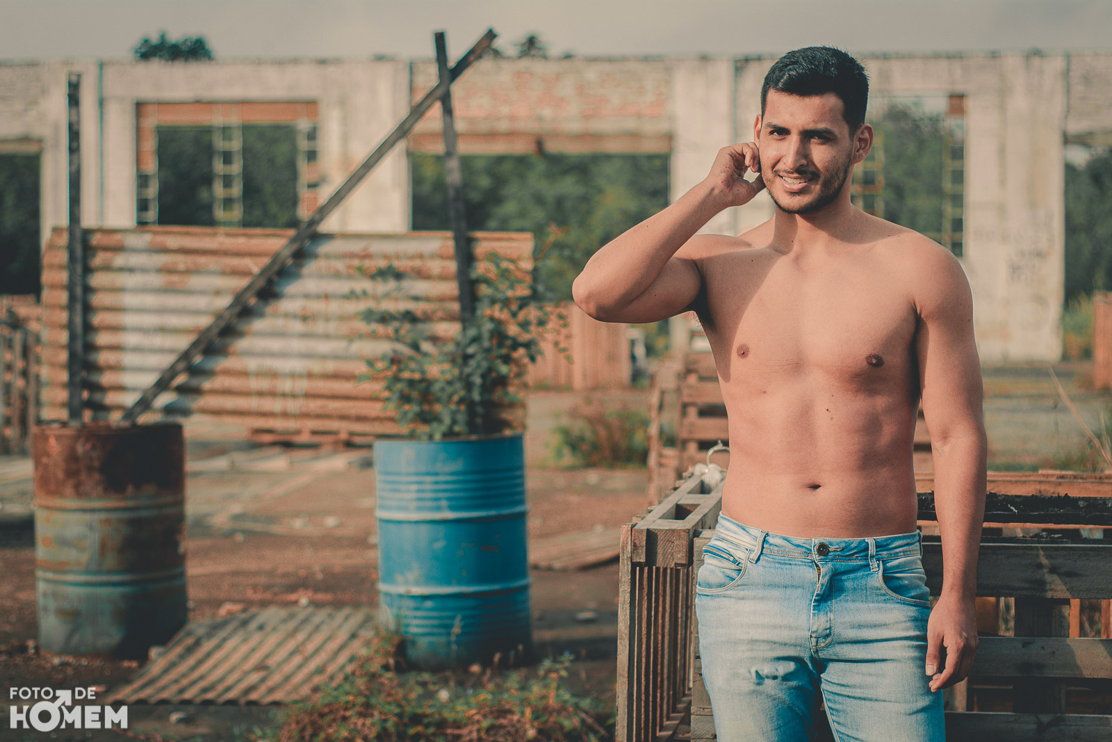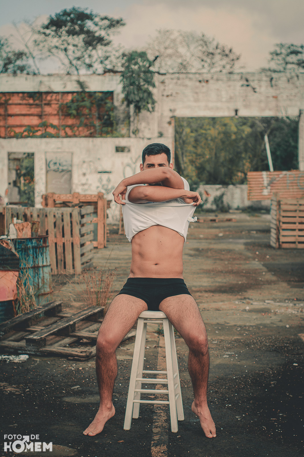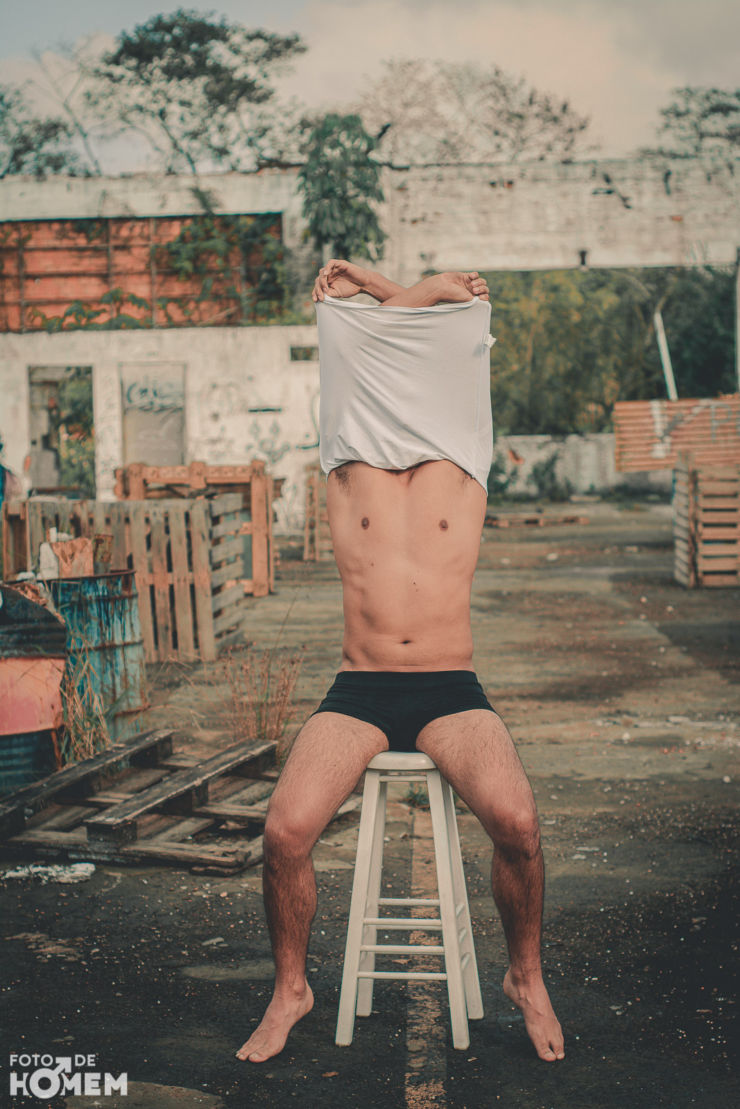 A sessão foi num galpão de uma antiga empresa em Joinville (SC), lugar bastante propício para um ensaio de nu. Caubi gostou bastante de participar de uma sessão para o site. “No início fiquei um pouco nervoso, mas o fotógrafo Eberson foi levando a sessão tranquilamente e me passou bastante segurança”, relata o jovem.