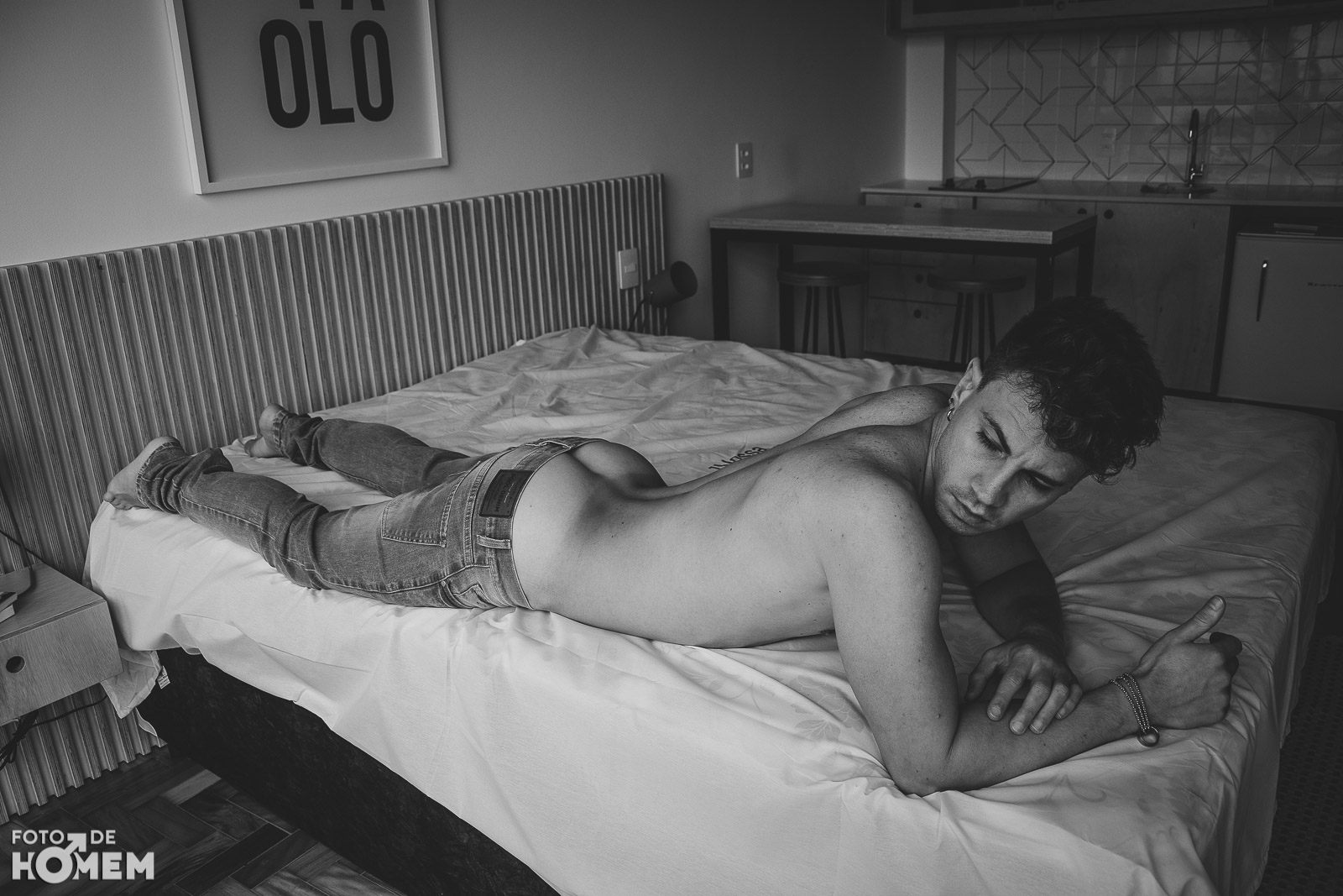 O rapaz tem 31 anos, é professor, e se diz um admirador de retratos de nu. “Sempre admirei muito fotografias de corpos nús e ter recebido o convite do Eberson foi unir o “útil ao agradável”. Gosto muito do trabalho dele, pois, é um profissional que me deixou muito à vontade, produzindo um ambiente acolhedor que me deixou bem seguro e confortável”.