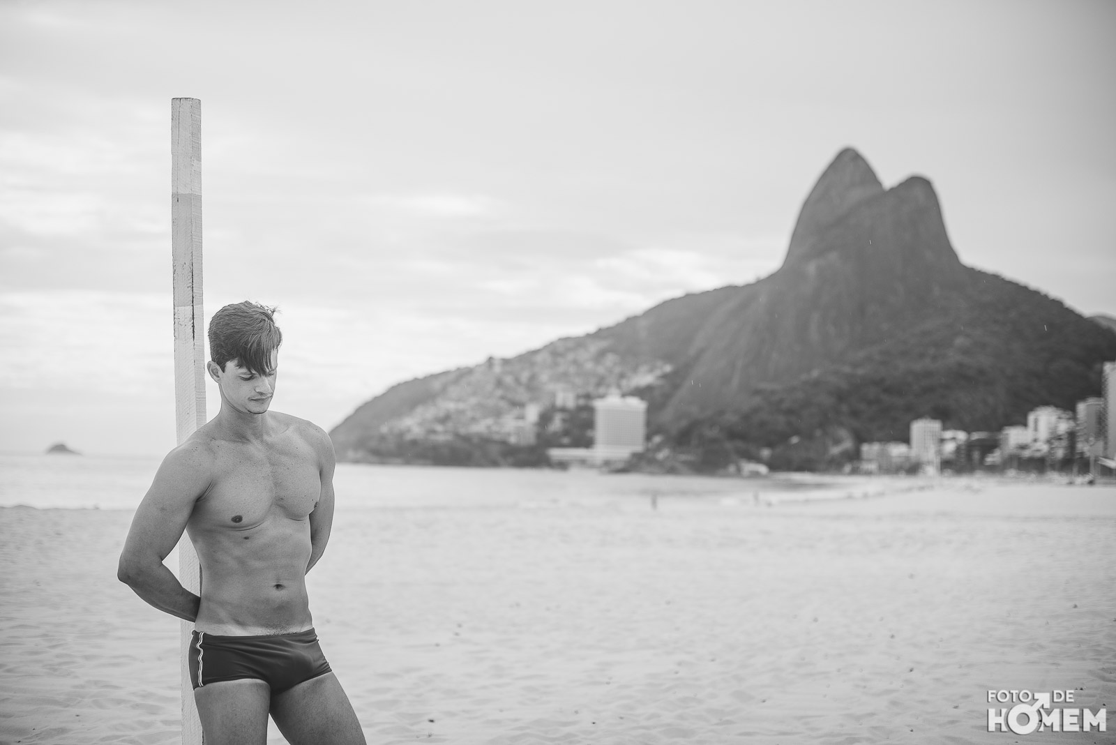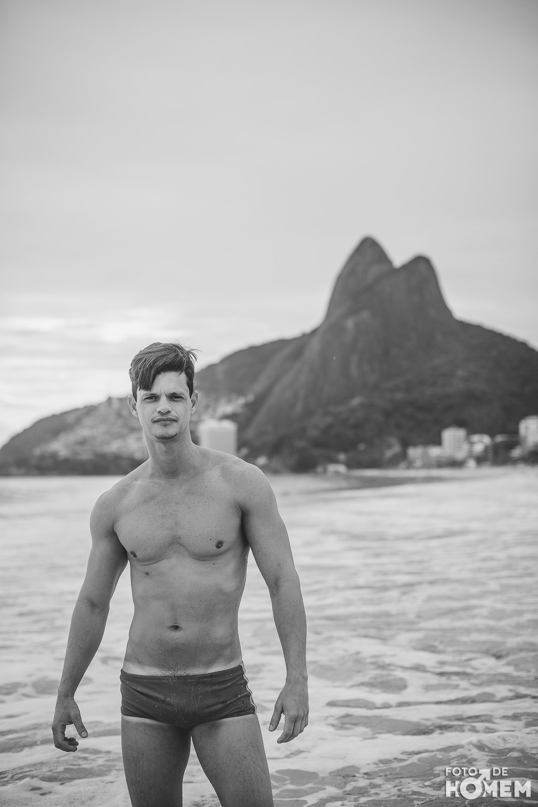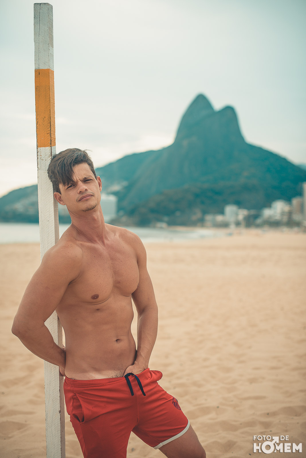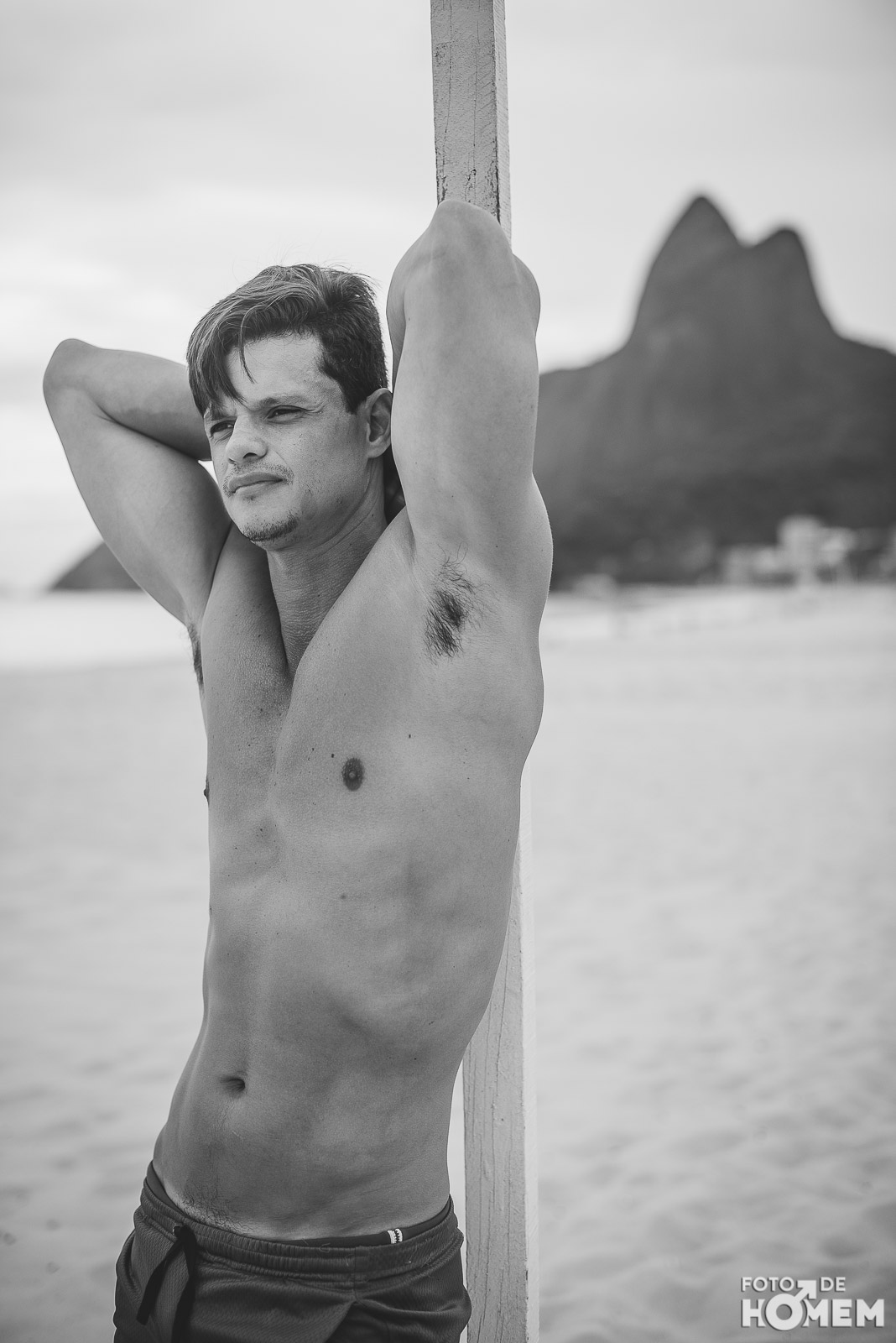 Ele estreia a série de ensaios feitas no Rio de Janeiro. Nas próximas semanas vocês terão a oportunidade de desnudar os corpos que frequentam as praias cariocas, com exclusividade para o Foto de Homem.