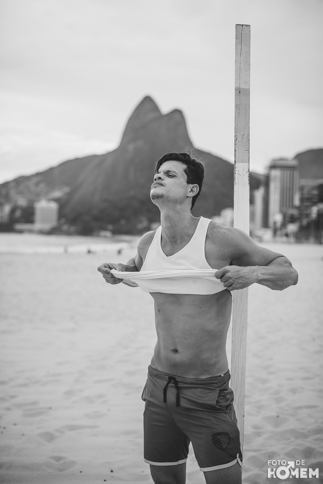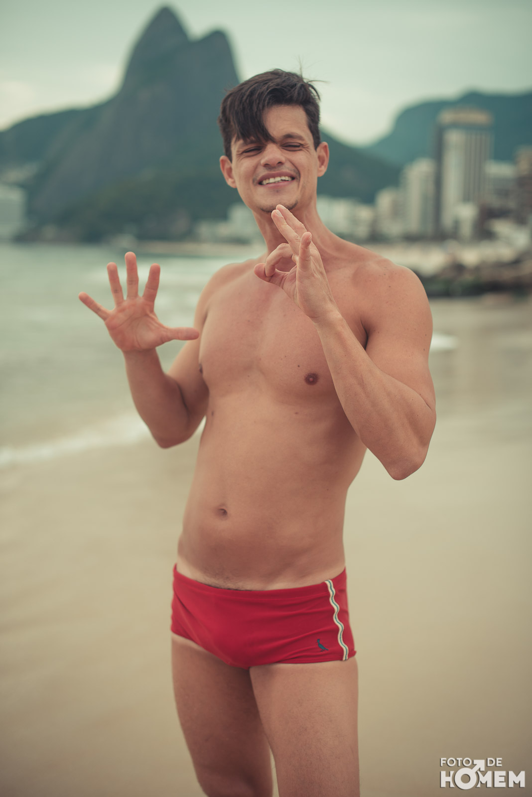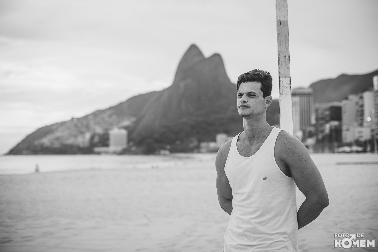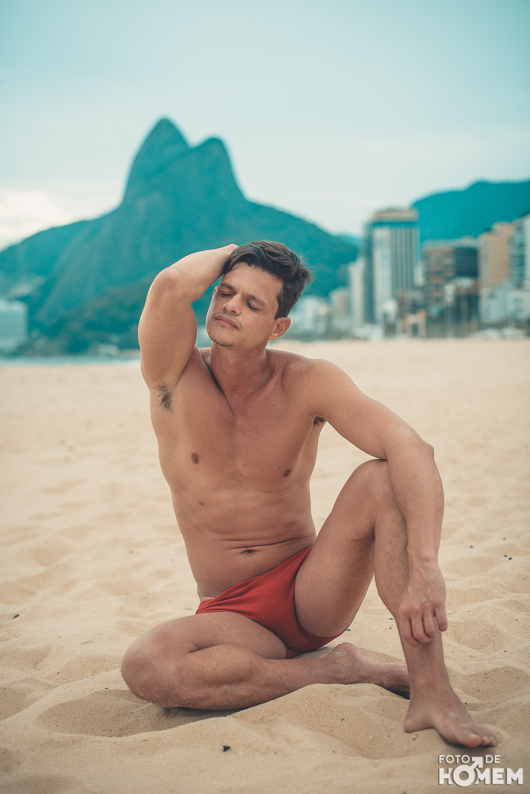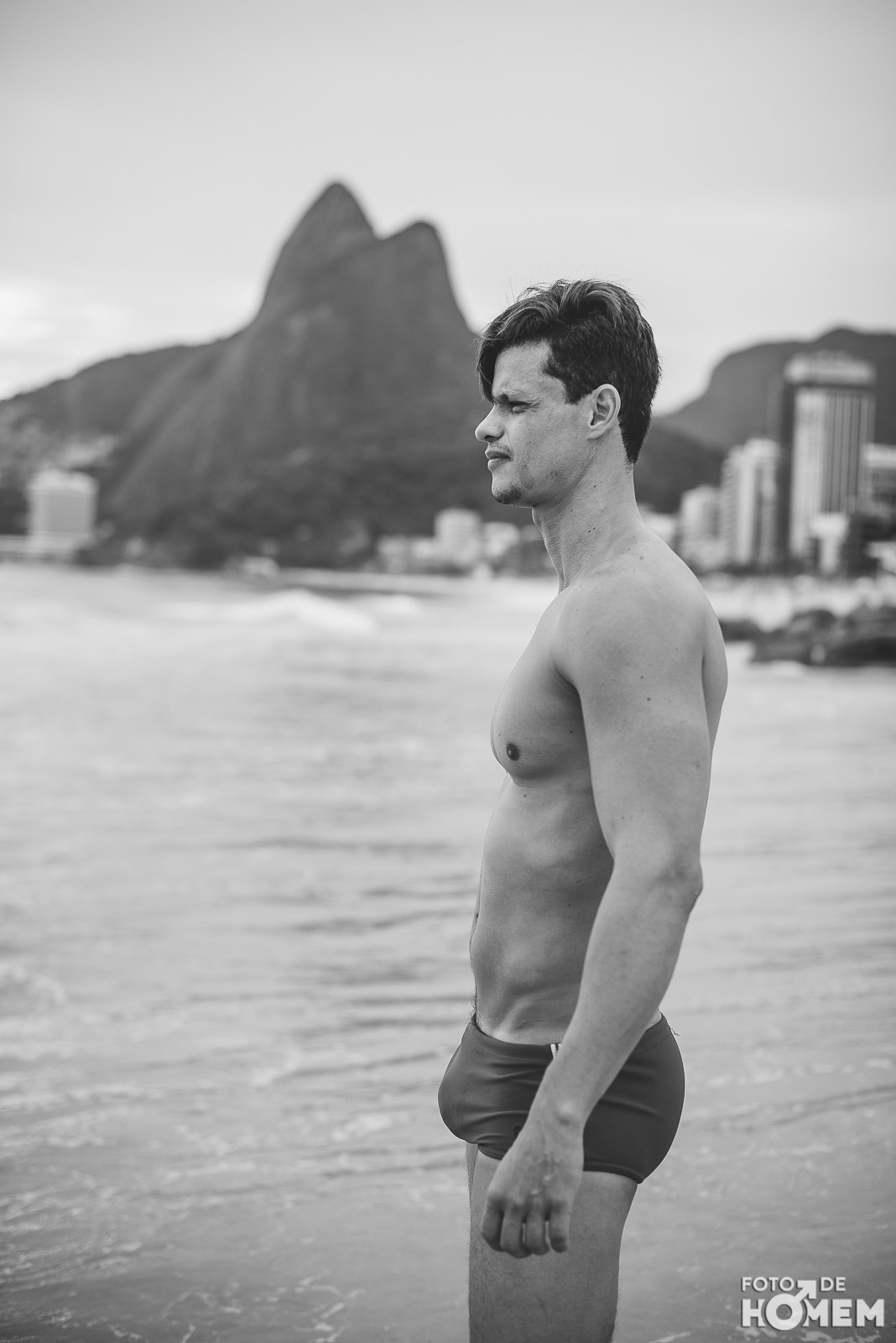Ele estreia a série de ensaios feitas no Rio de Janeiro. Nas próximas semanas vocês terão a oportunidade de desnudar os corpos que frequentam as praias cariocas, com exclusividade para o Foto de Homem.