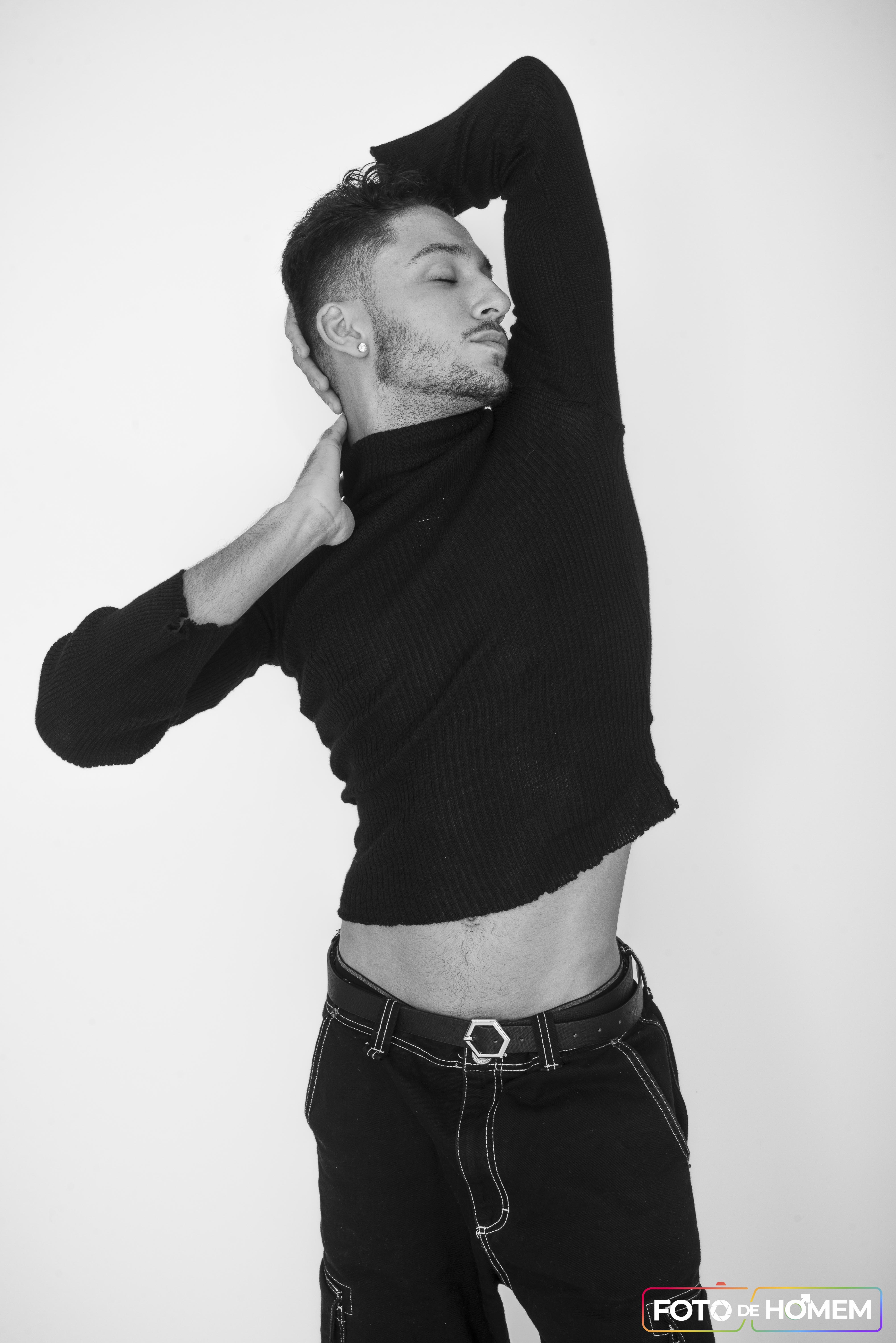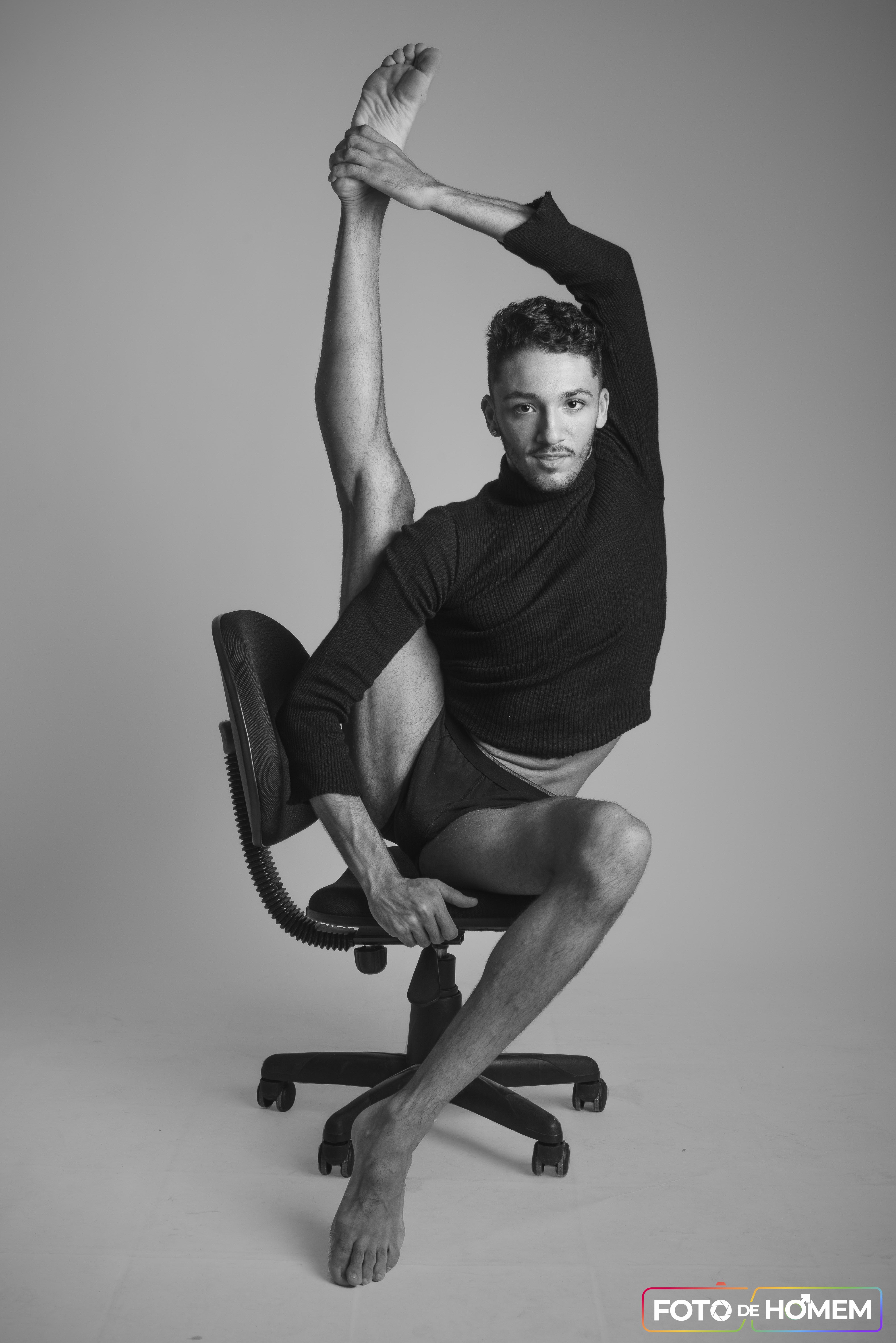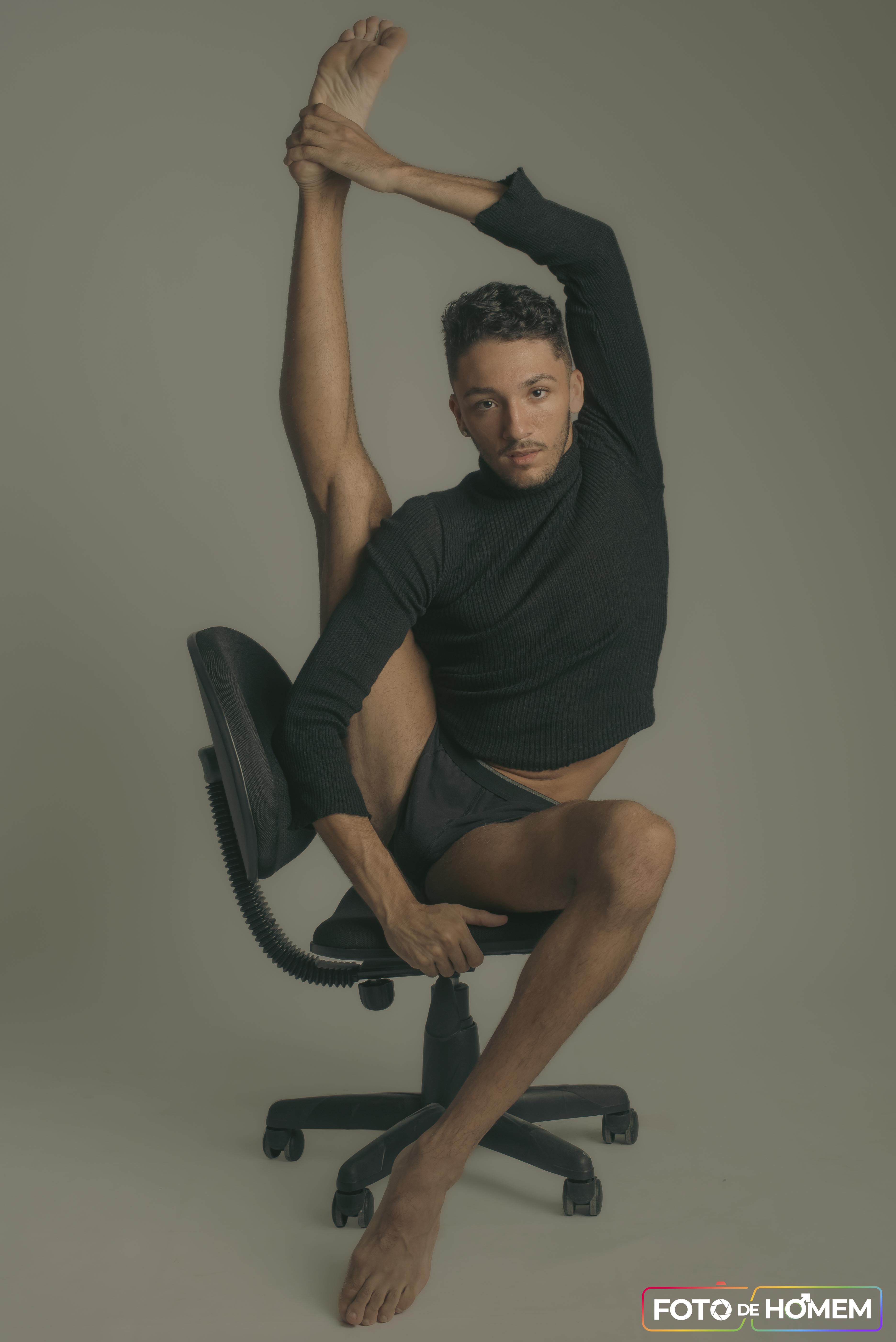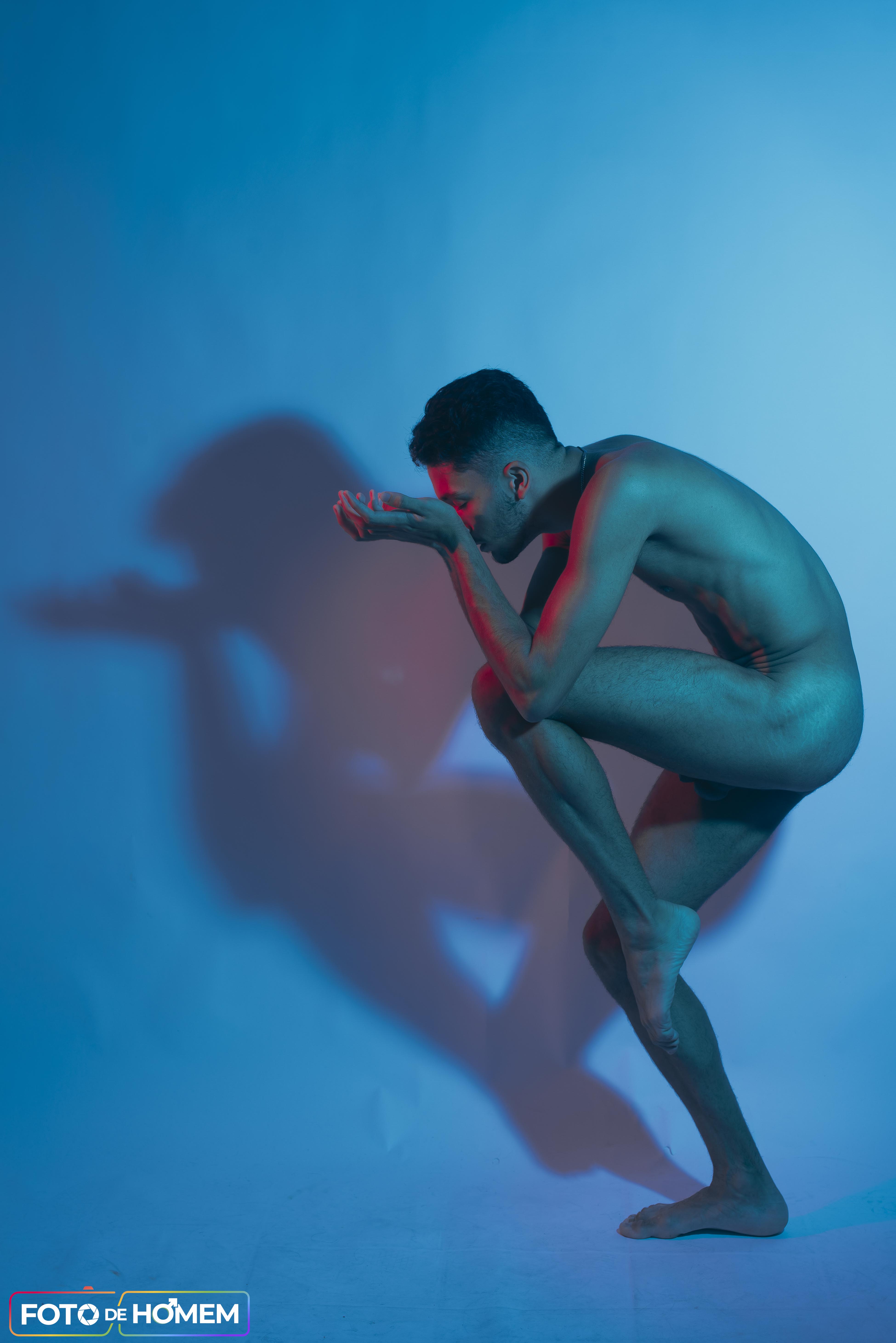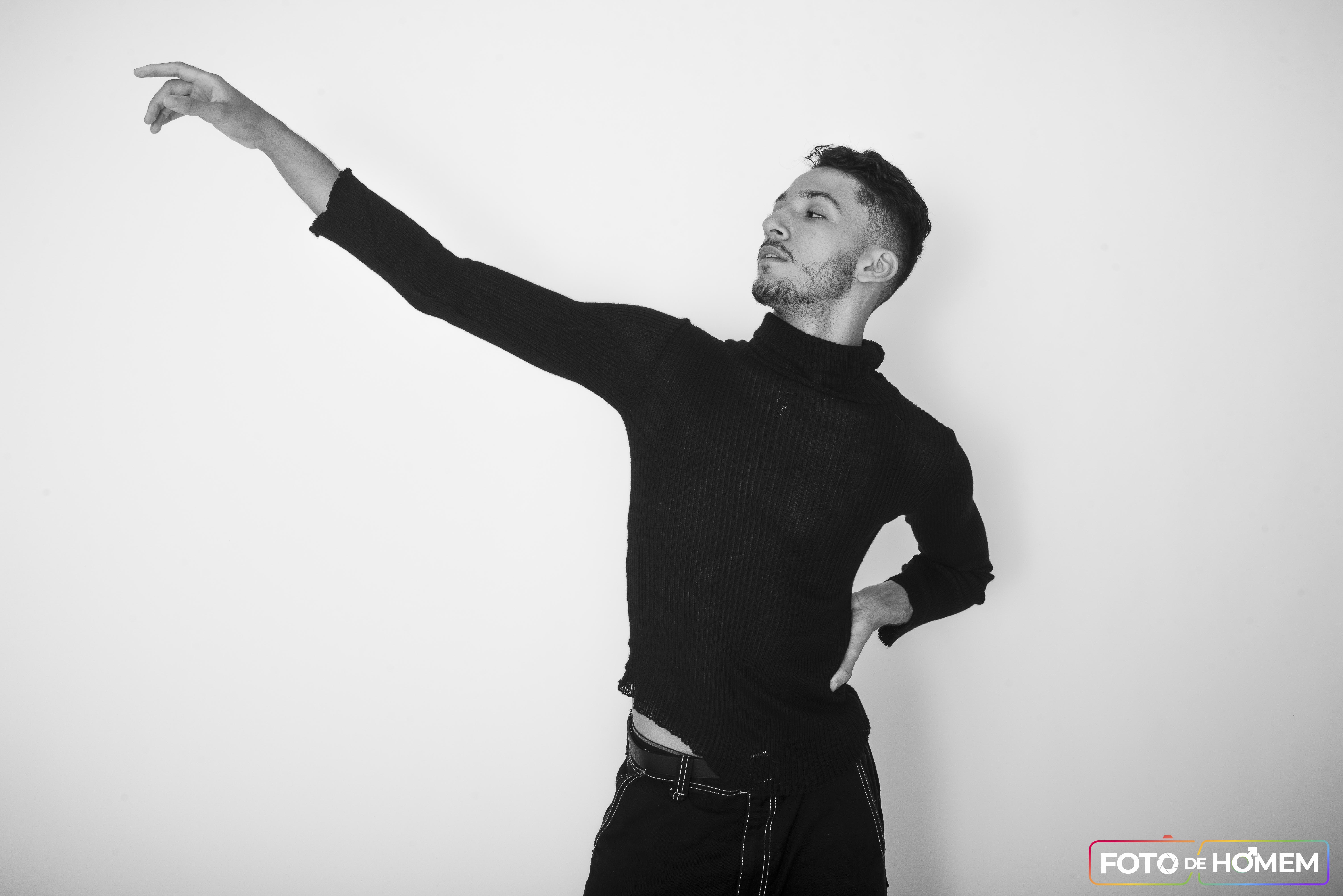 Particularmente eu gosto de fotografar artistas em função de sua entrega com o corpo, a consciência corporal e o despojamento. Não foi diferente com o Matheus, que soube usar suas habilidades como bailarino para entregar muita expressividade. Isso cria um desenho lindo nas fotos, algo que gosto muito de explorar enquanto estou atrás da câmera.
