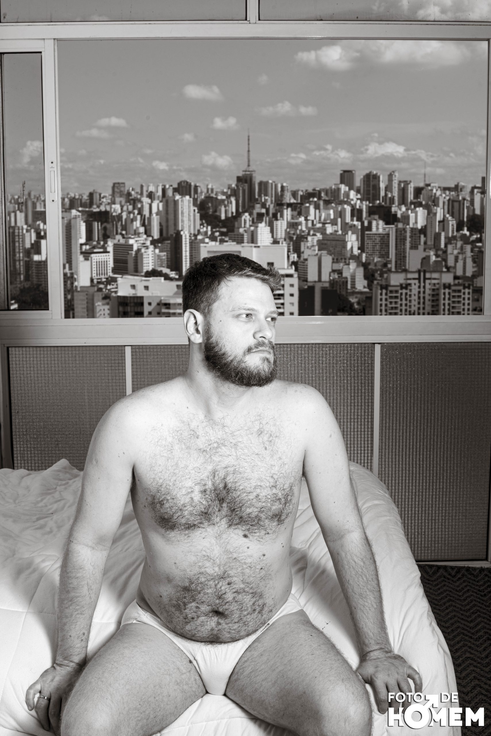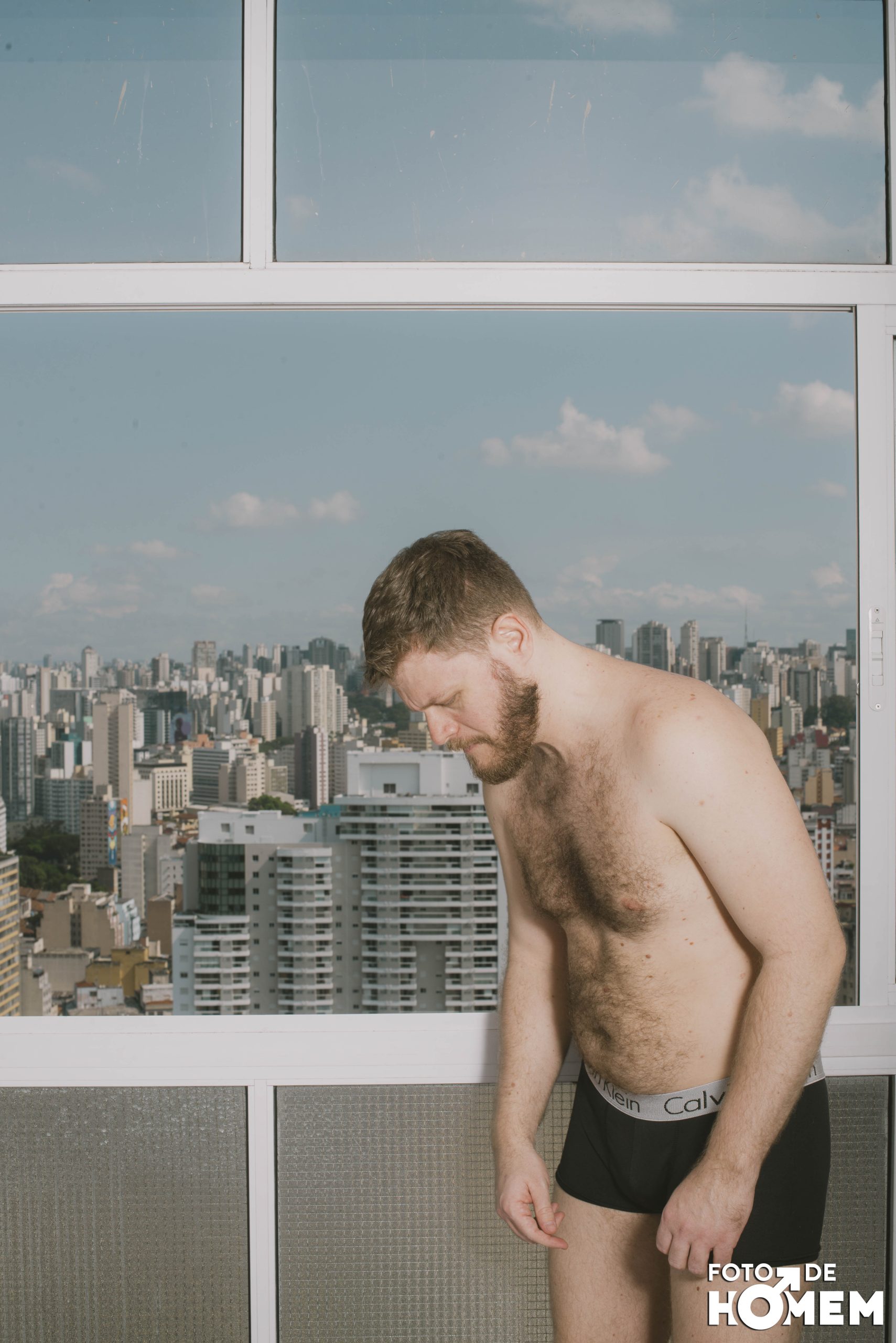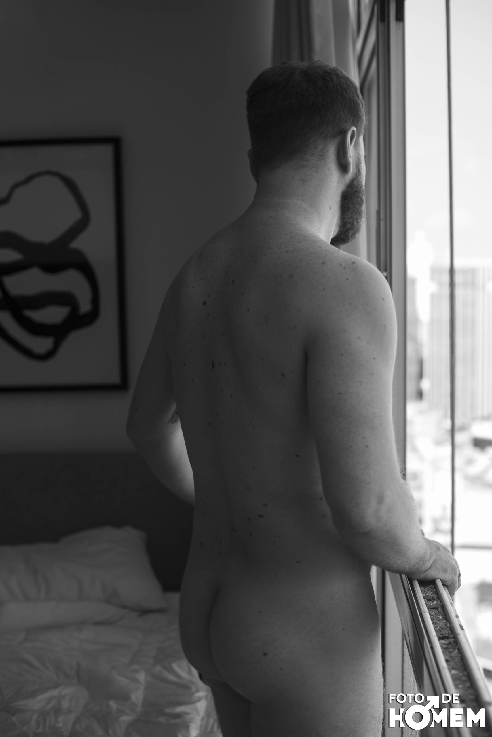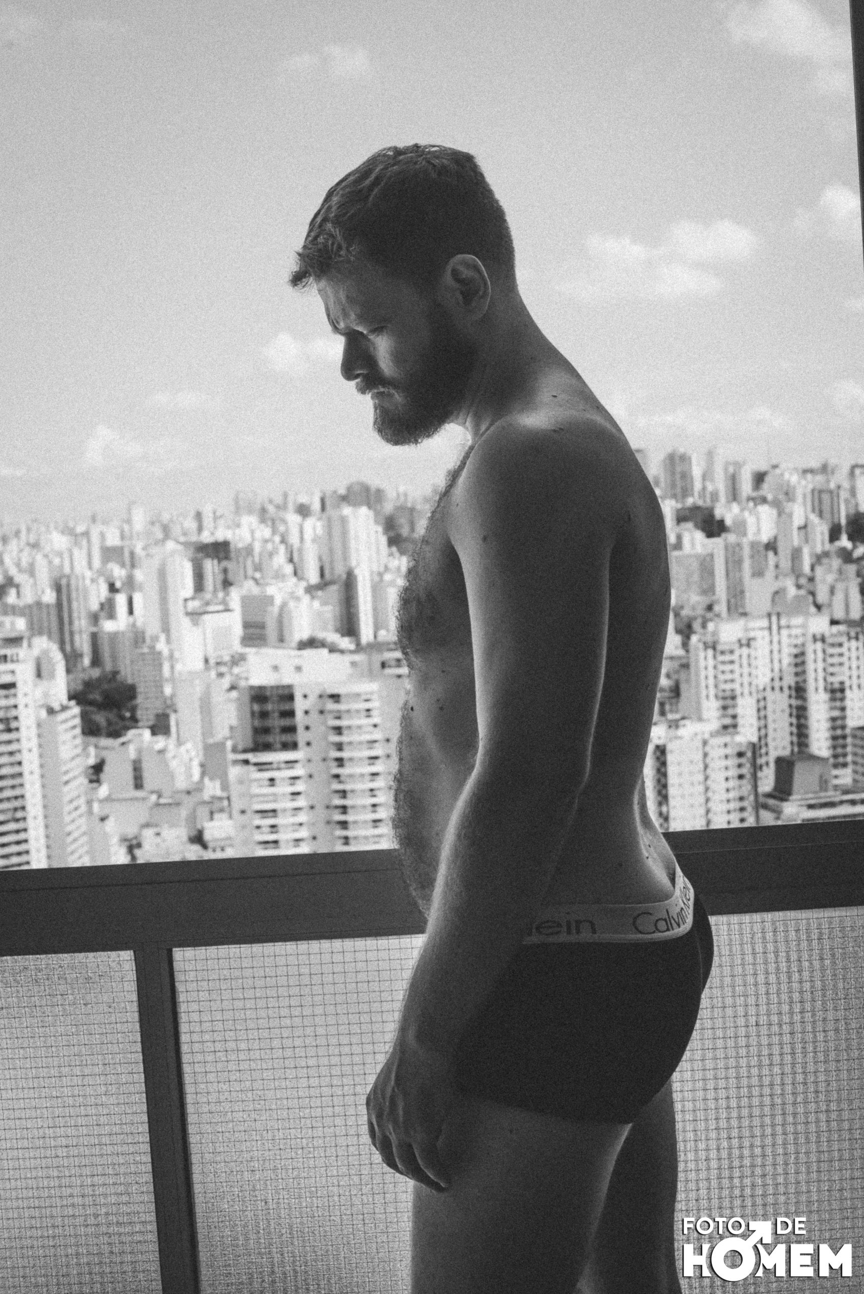O ensaio de hoje é com o Felipe, fotografado em São Paulo, no edifício Copan, em fevereiro. Ele, que já foi controlador de tráfego aéreo, revelou toda a sua nudez para o Foto de Homem.