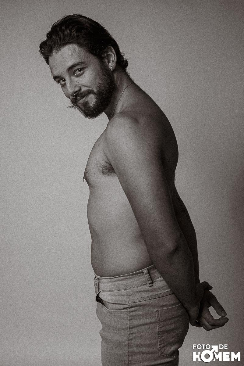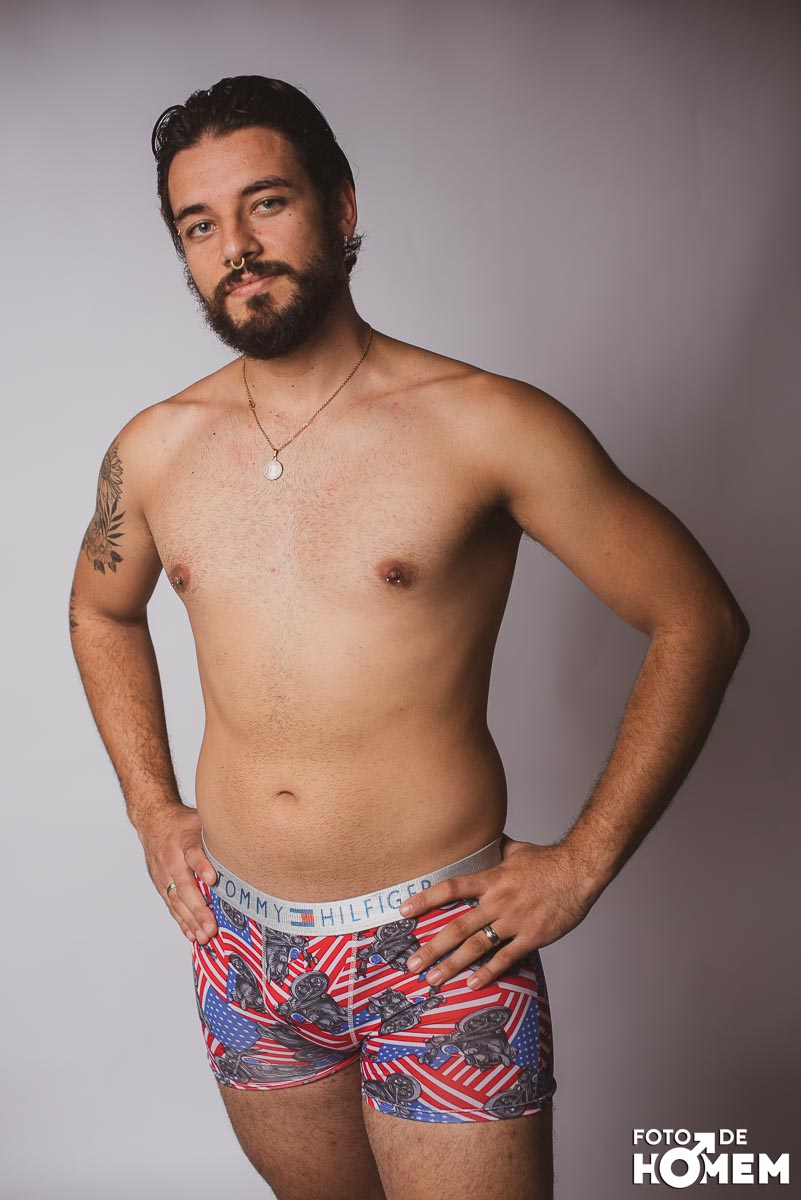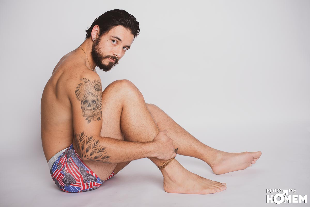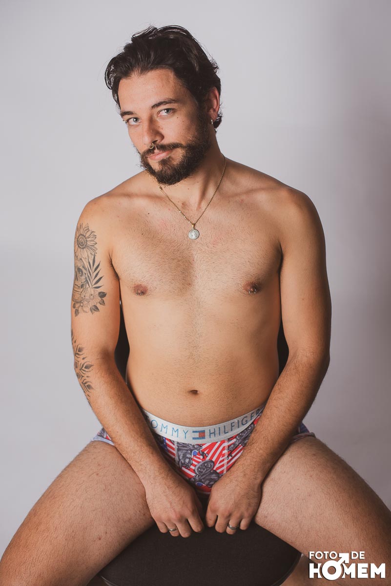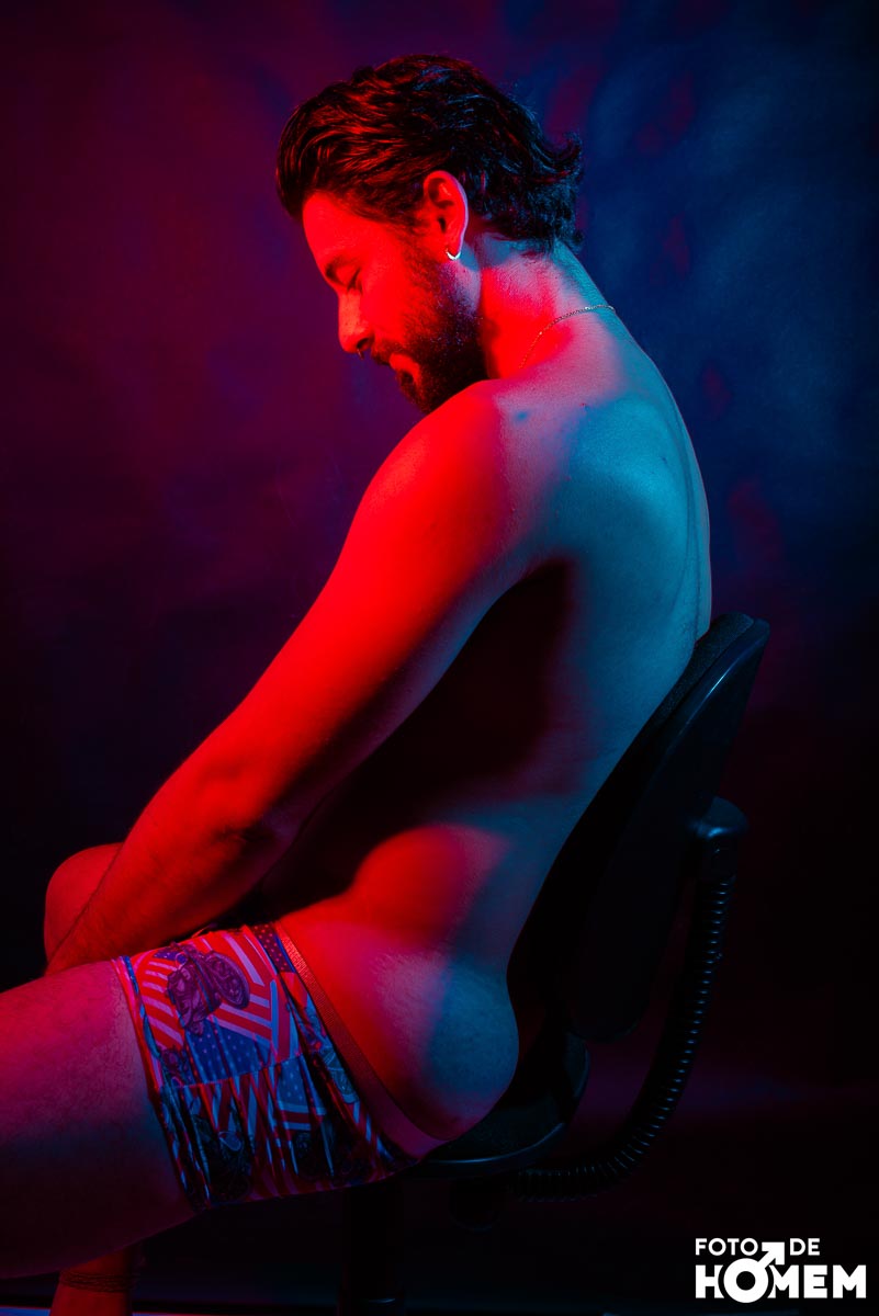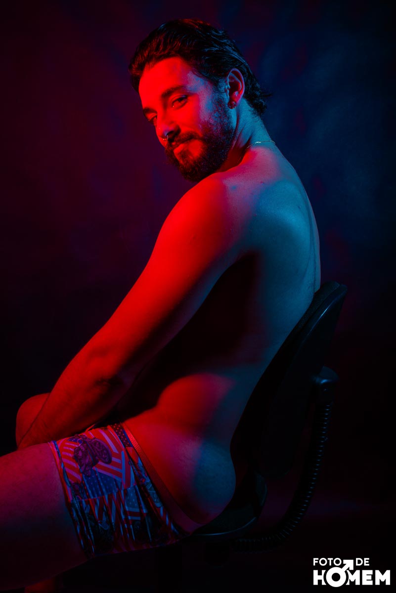 O ensaio desta semana é com o Elon, fotografado no estúdio do Foto de Homem em Joinville (SC), em julho de 2023.
