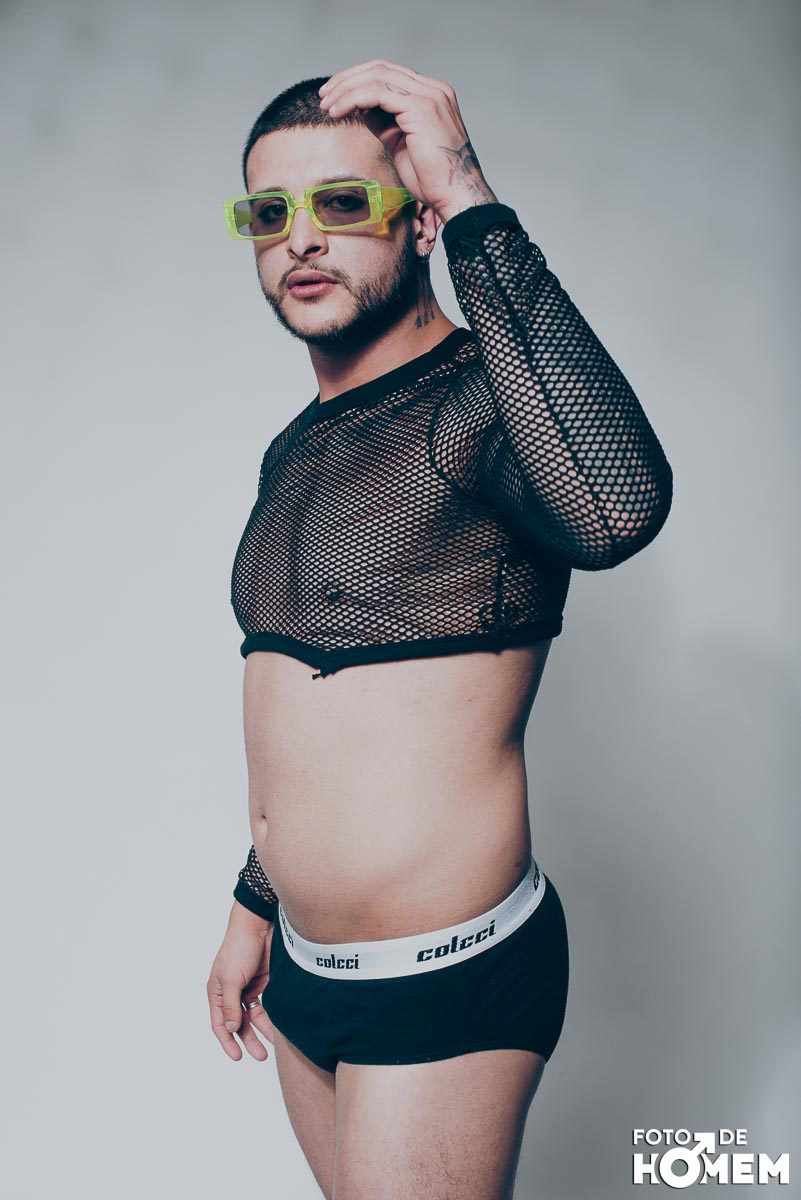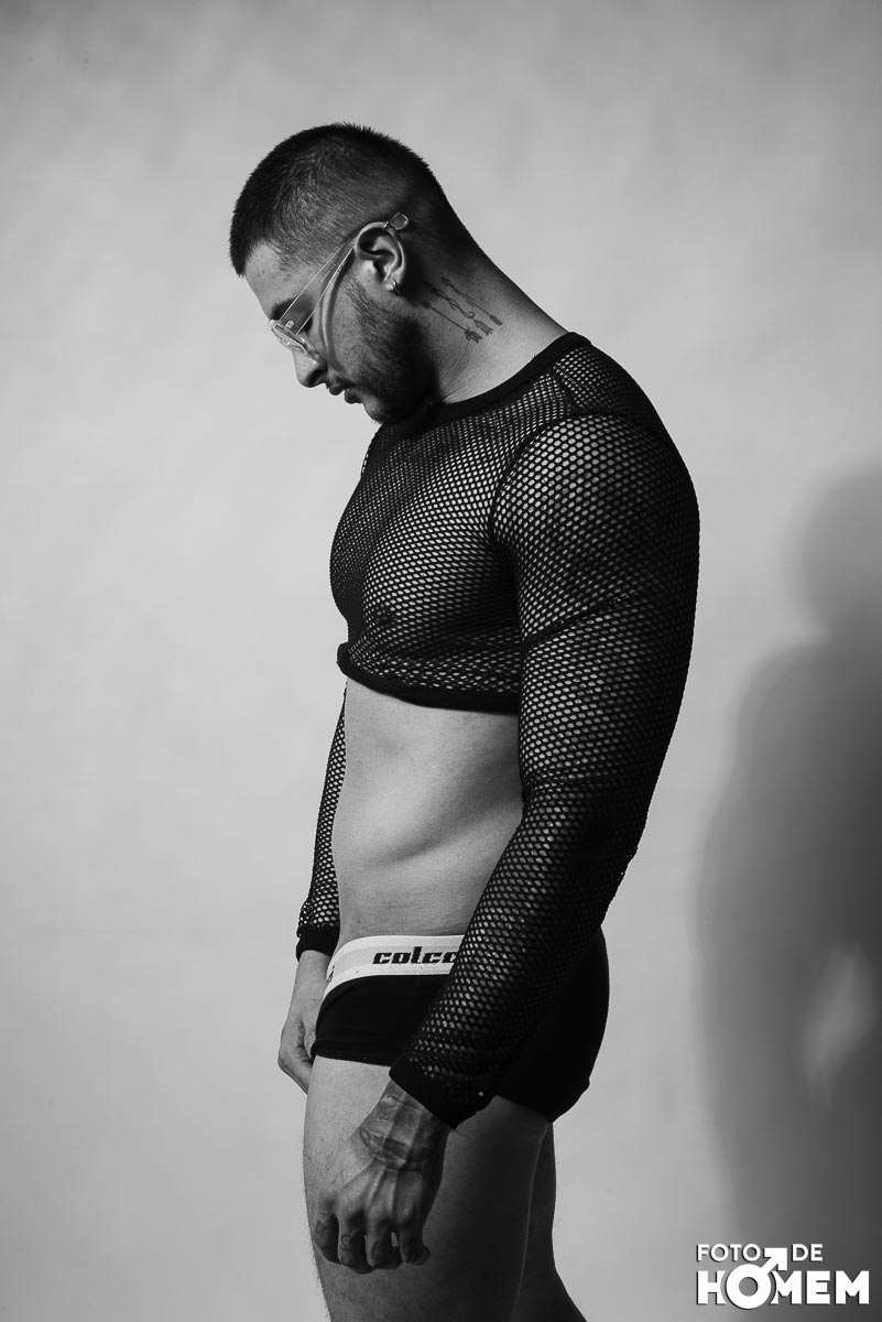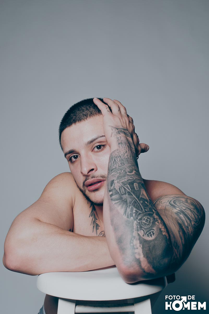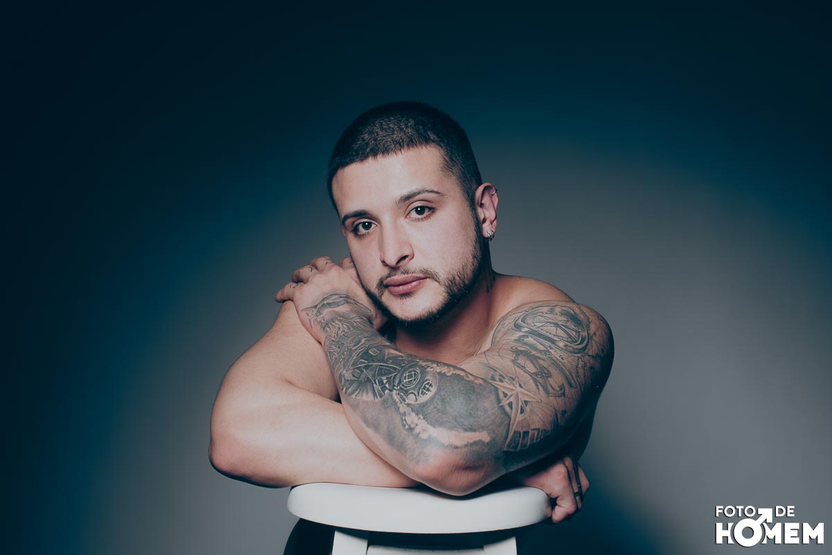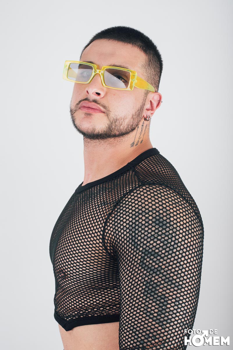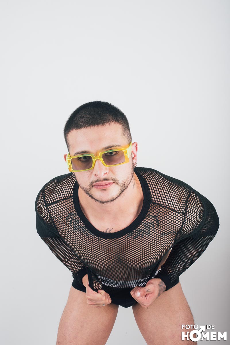 O ensaio desta semana é com o DJ Bruno Vozz, fotografado no estúdio do Foto de Homem em Joinville (SC), em junho de 2023.