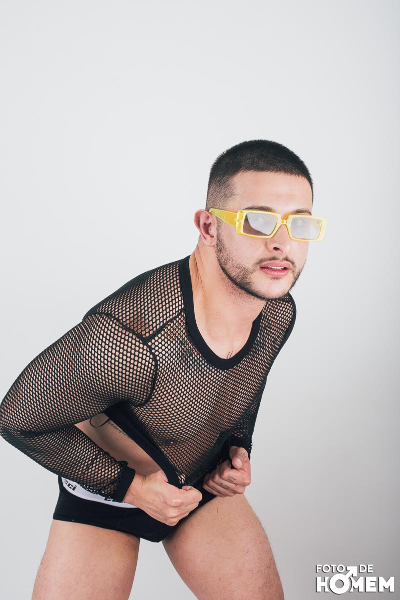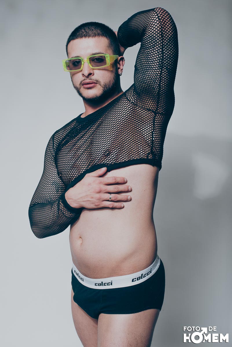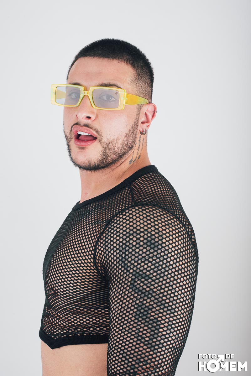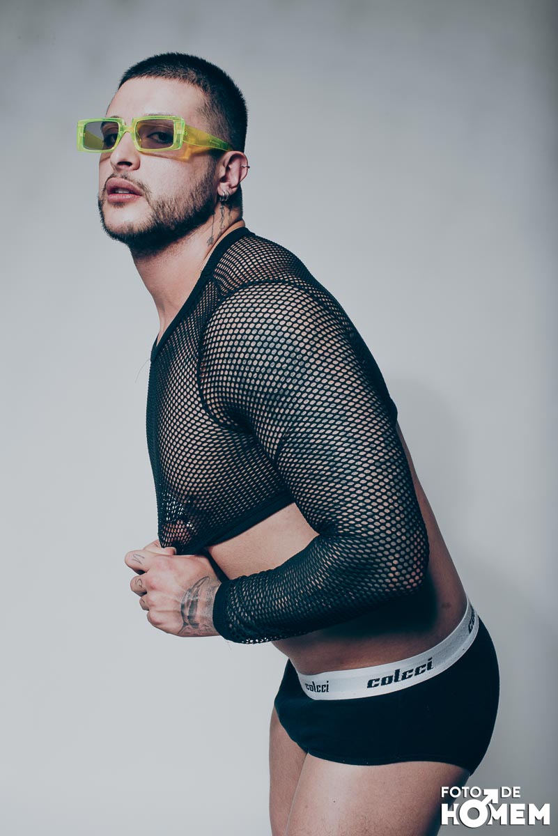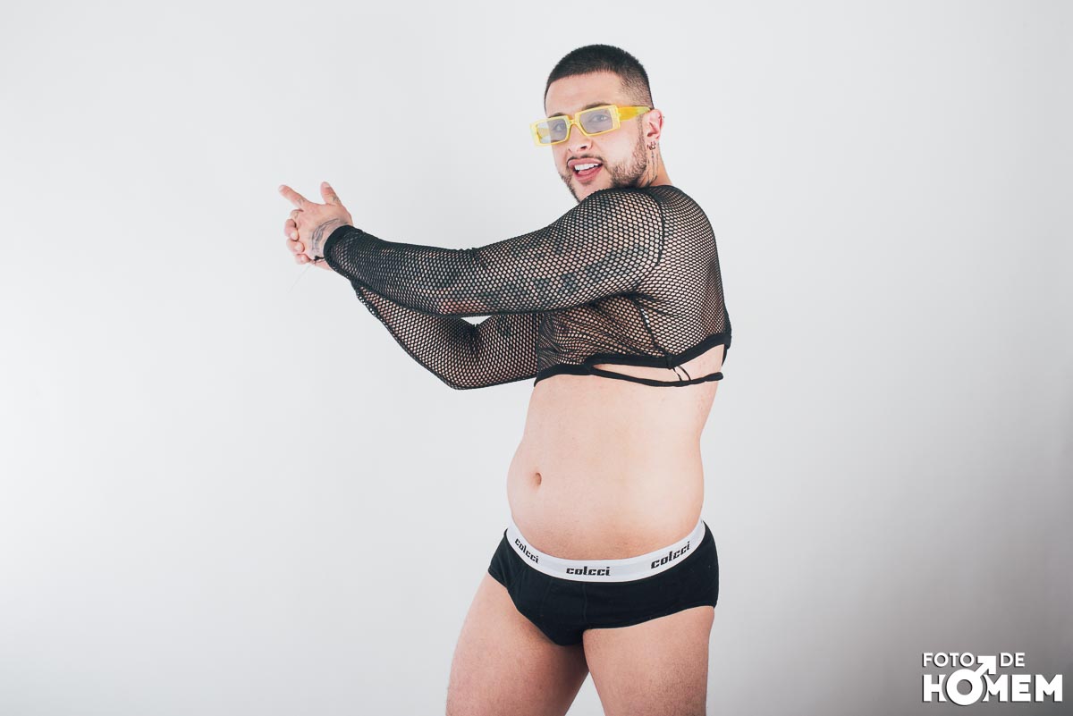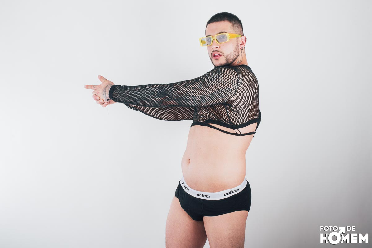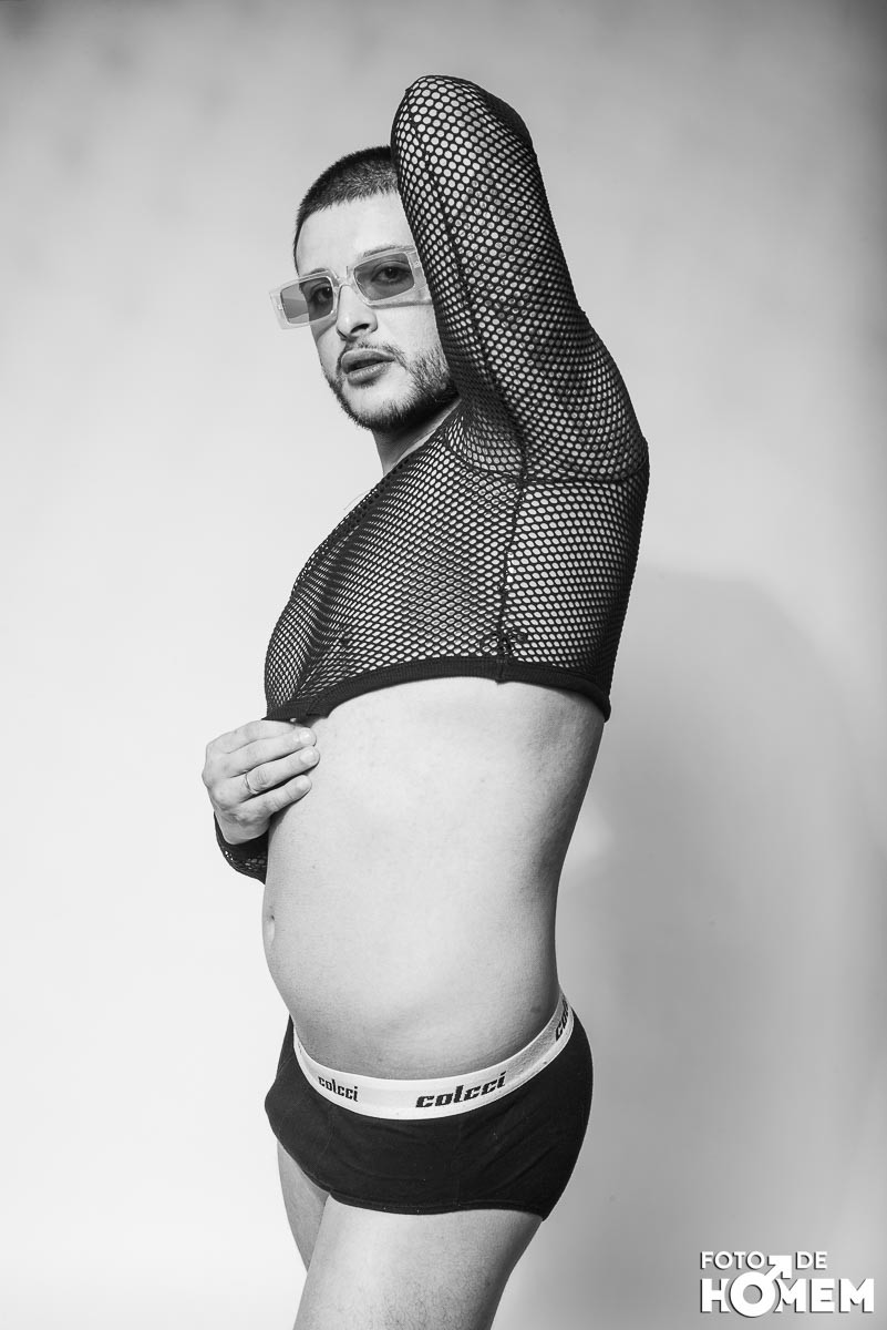 O ensaio desta semana é com o DJ Bruno Vozz, fotografado no estúdio do Foto de Homem em Joinville (SC), em junho de 2023.