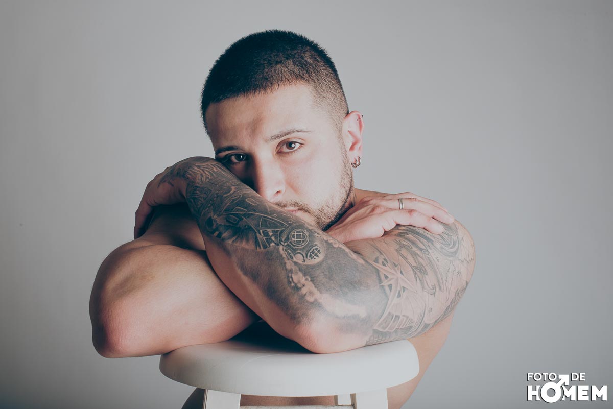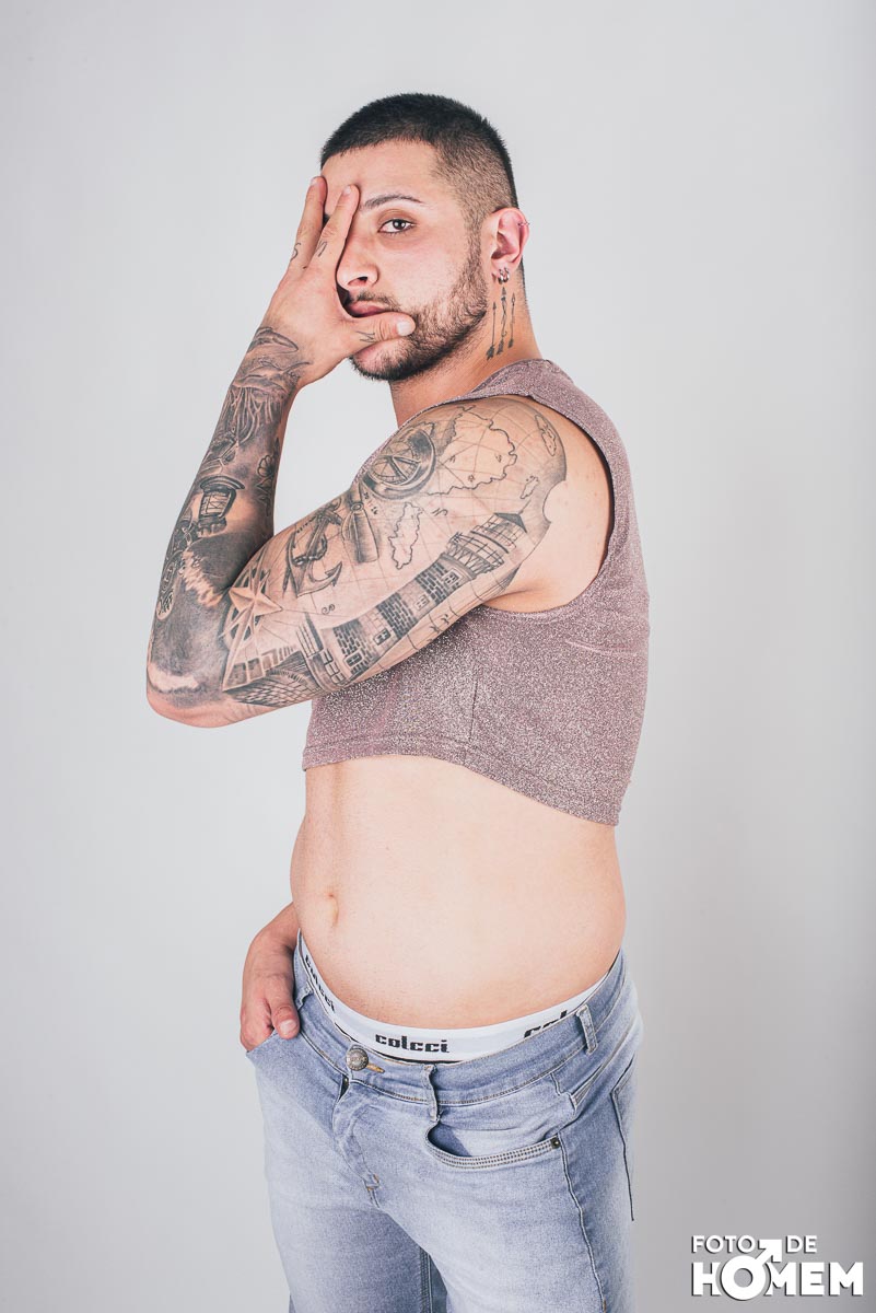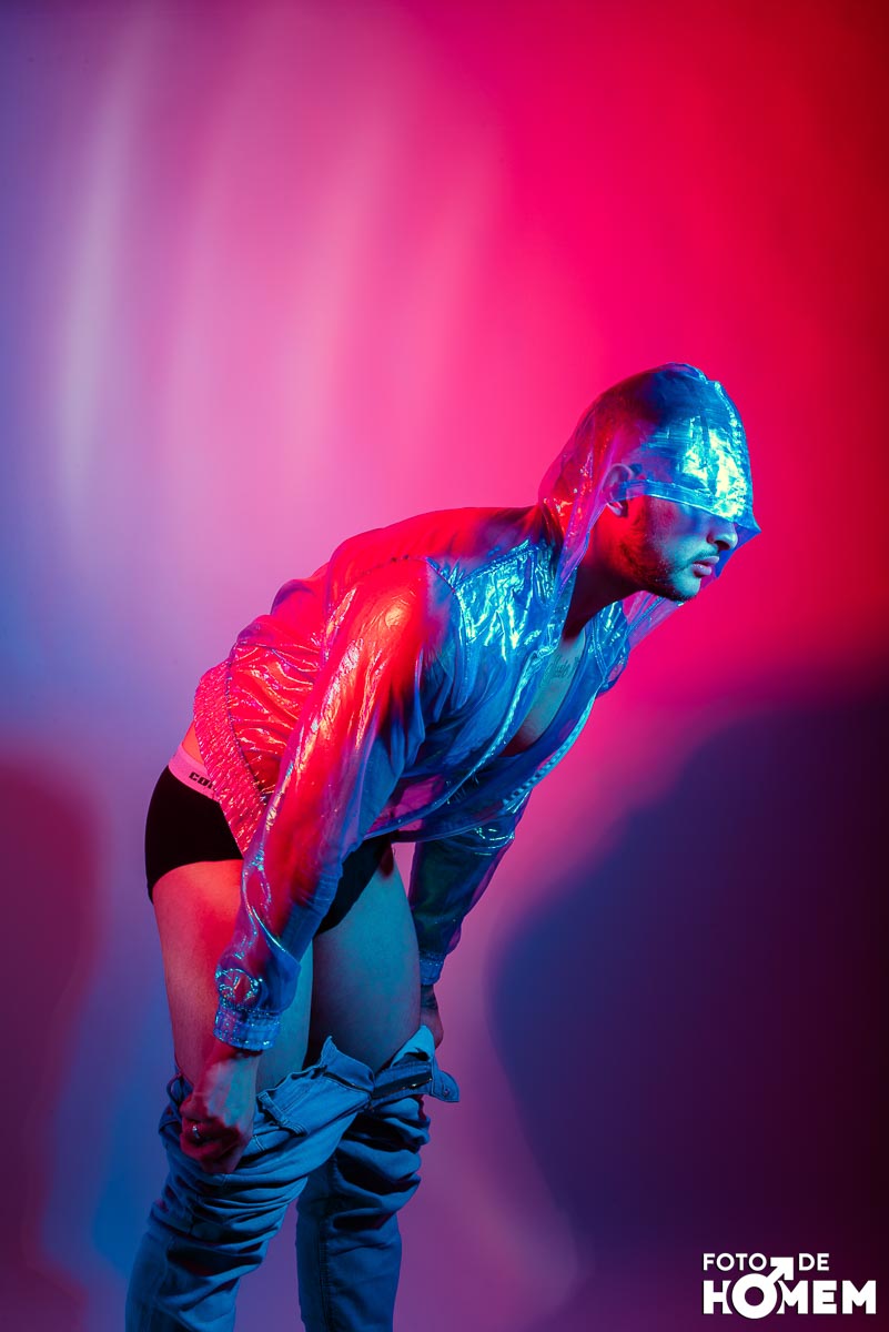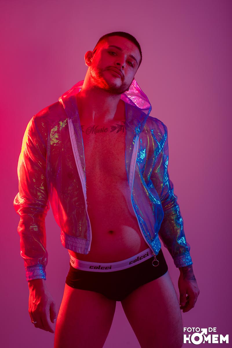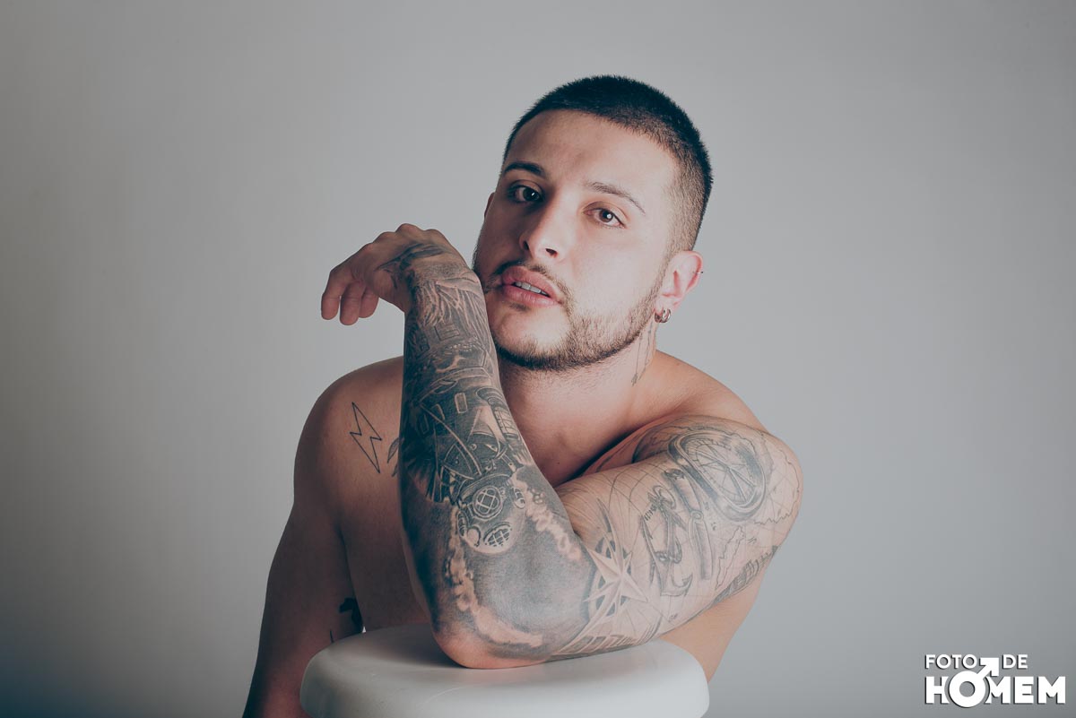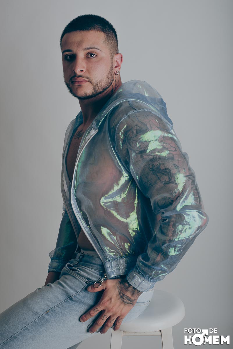 O ensaio desta semana é com o DJ Bruno Vozz, fotografado no estúdio do Foto de Homem em Joinville (SC), em junho de 2023.