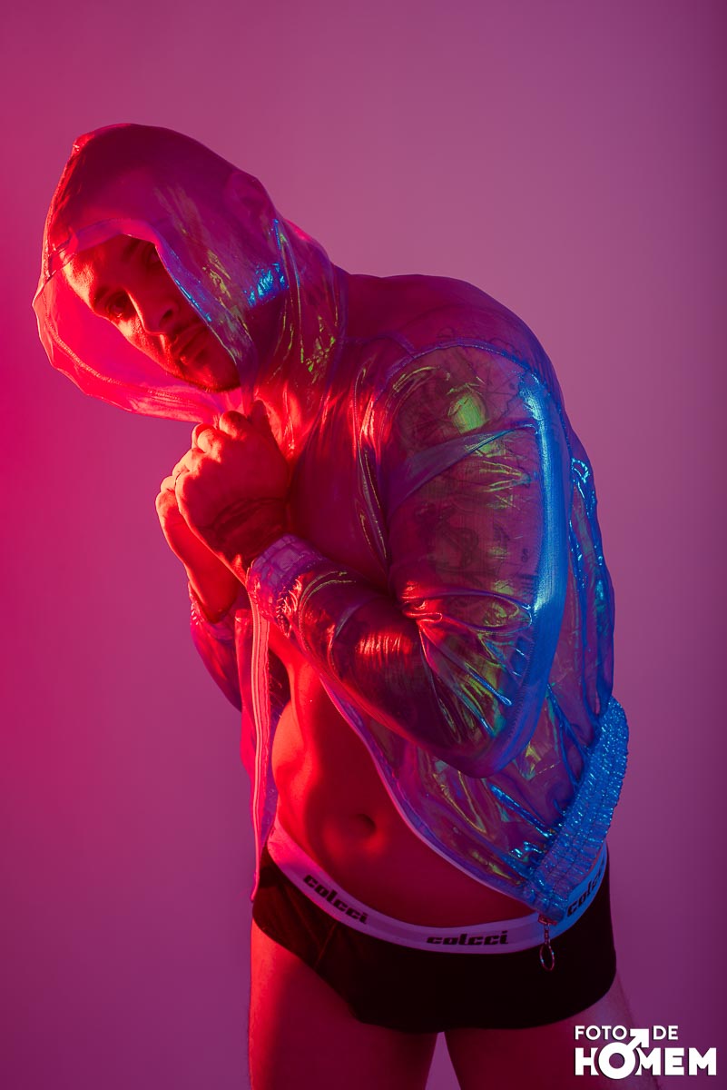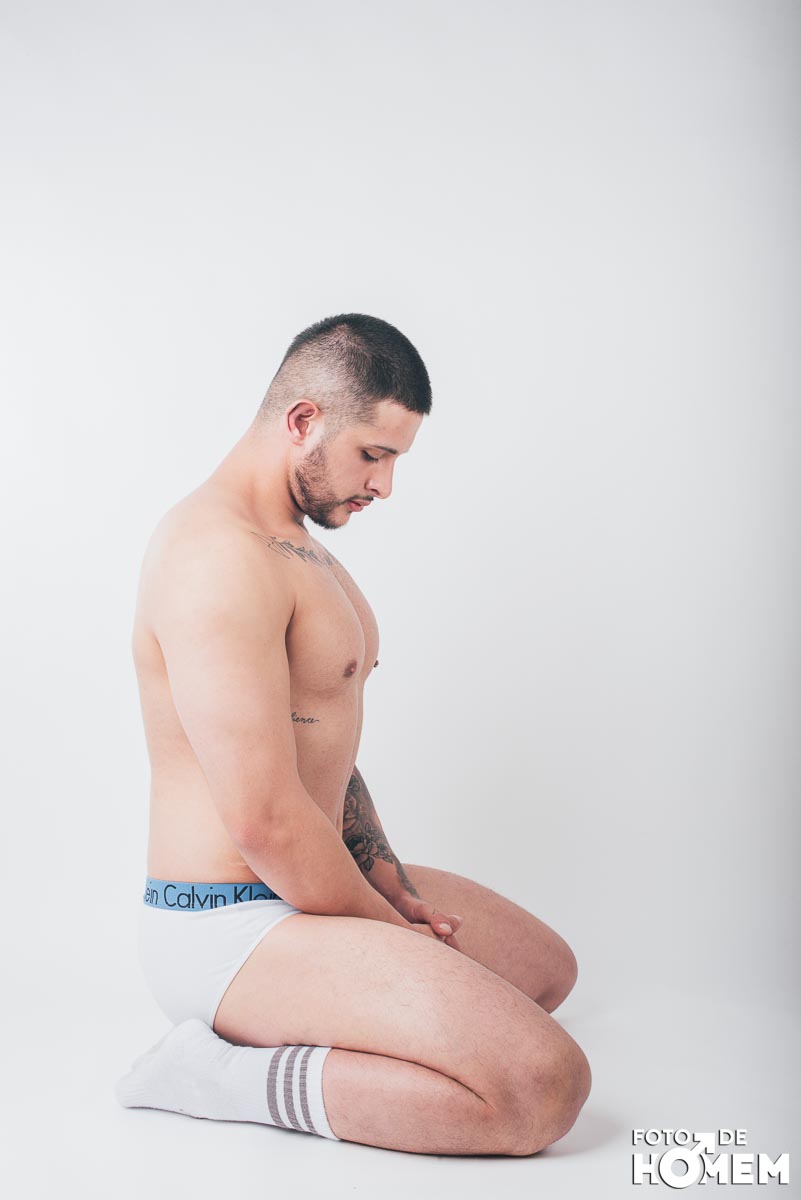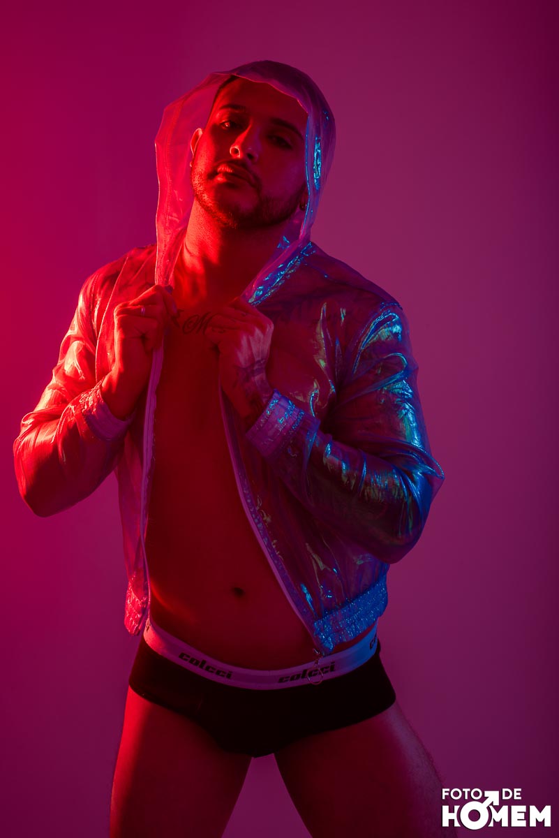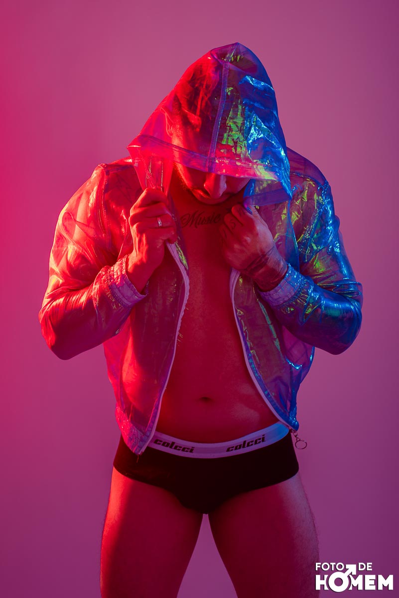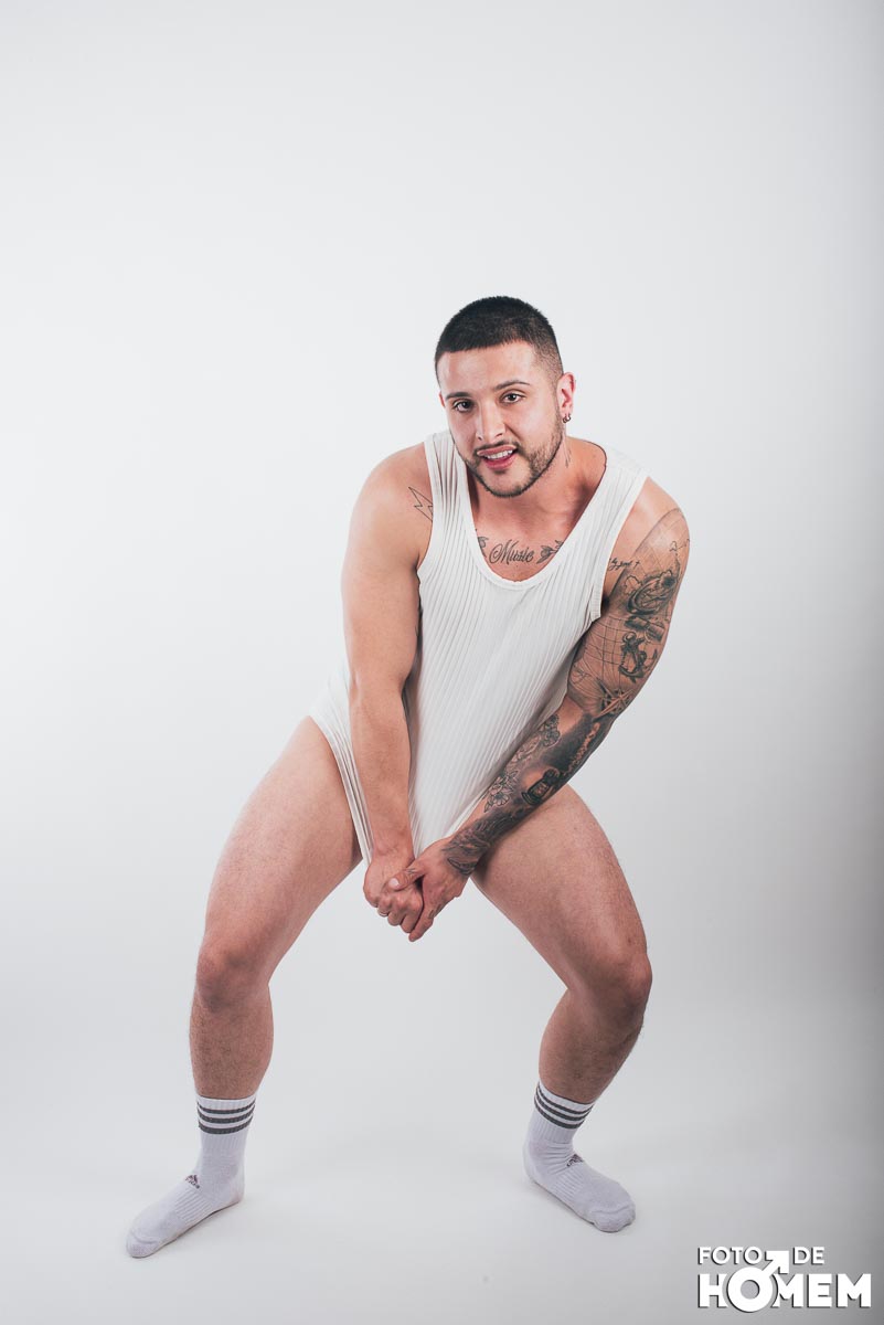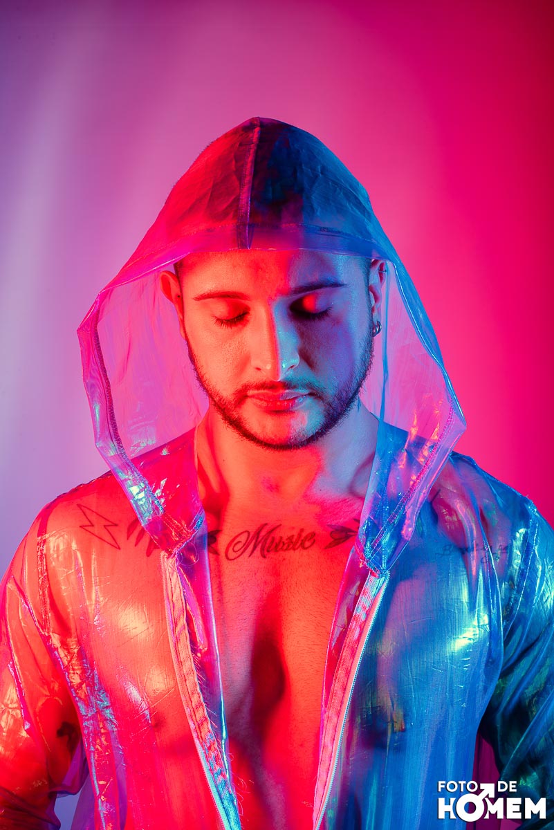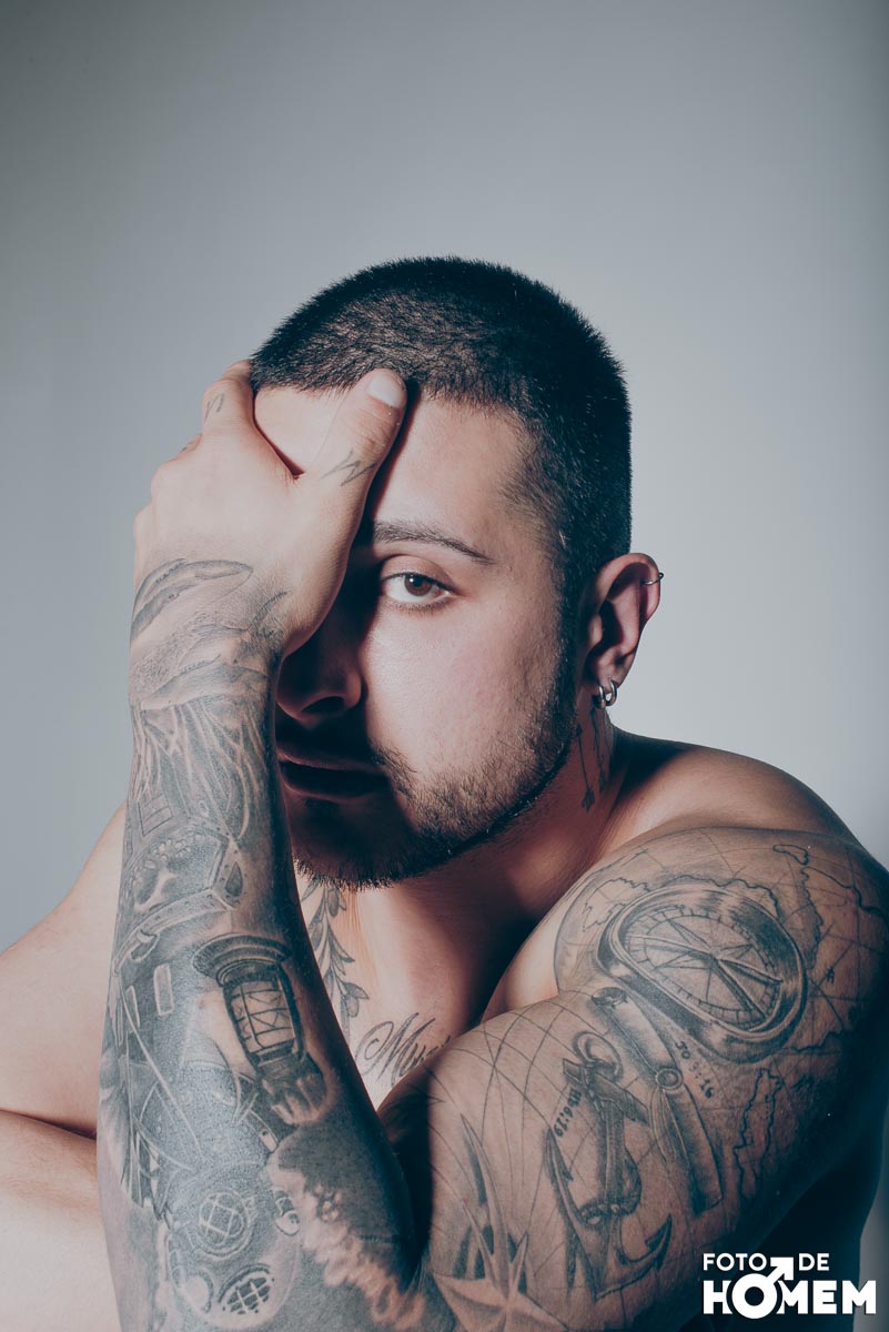 O ensaio desta semana é com o DJ Bruno Vozz, fotografado no estúdio do Foto de Homem em Joinville (SC), em junho de 2023.