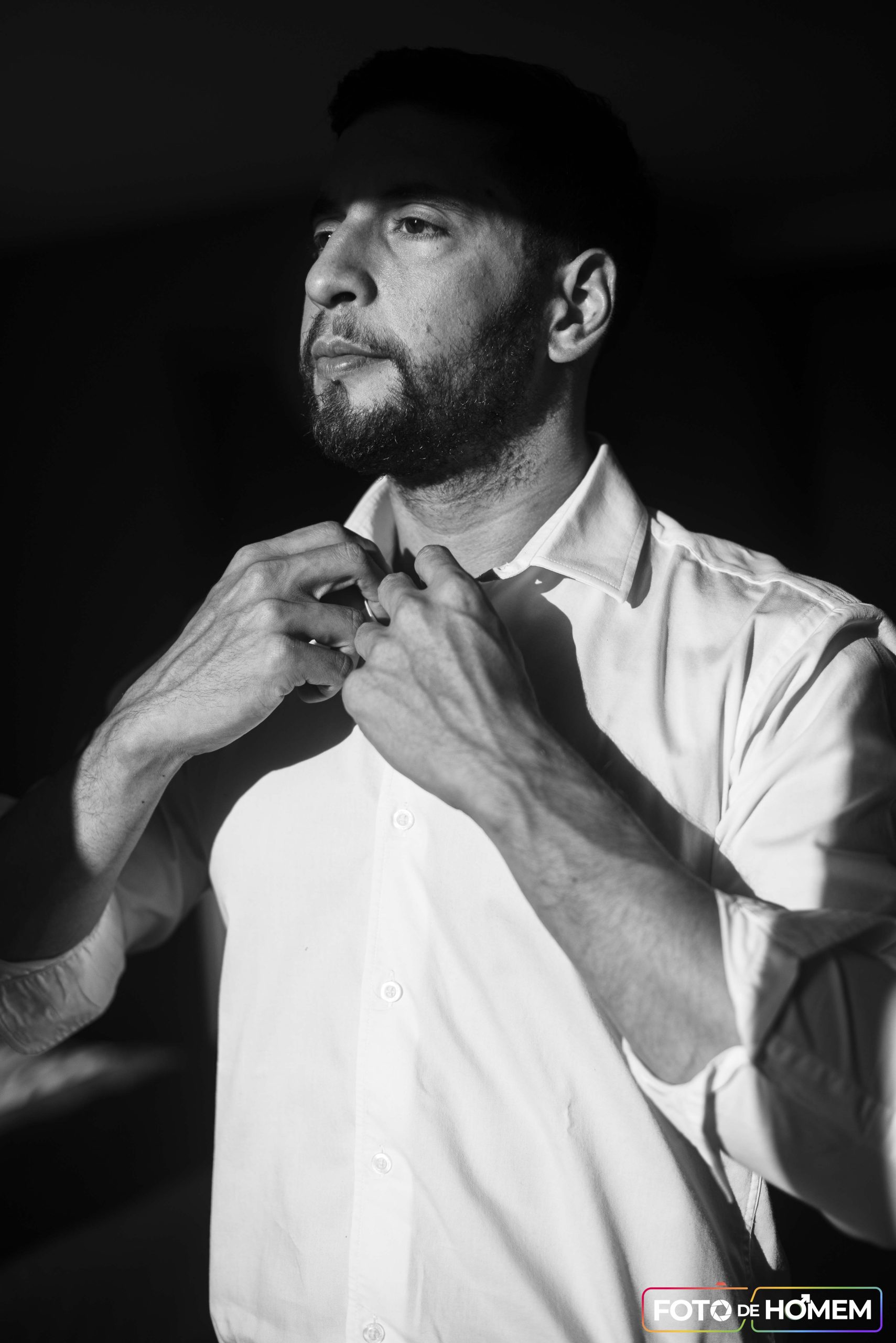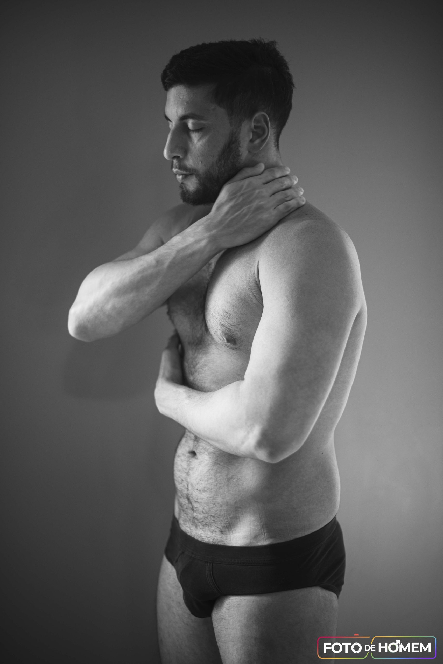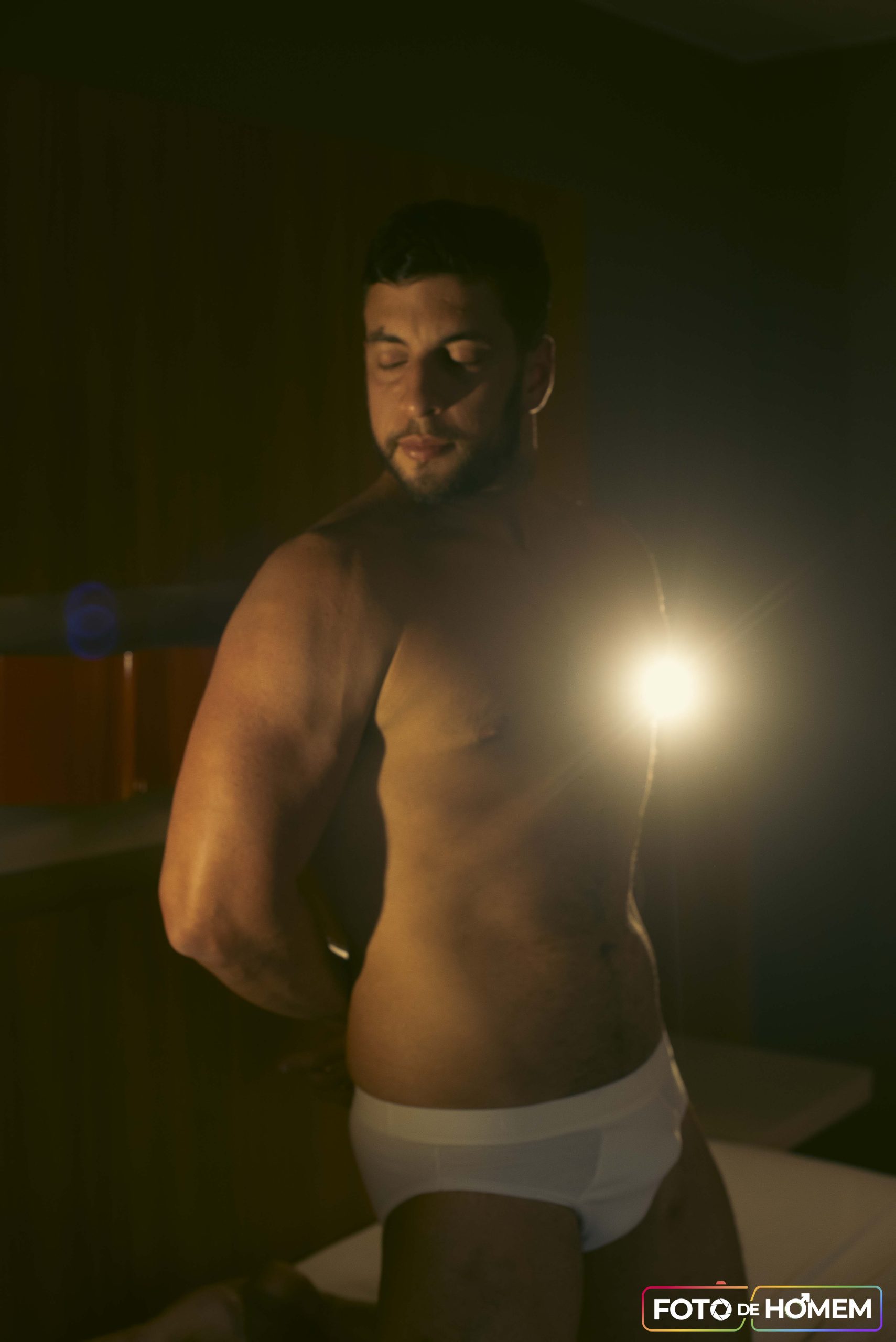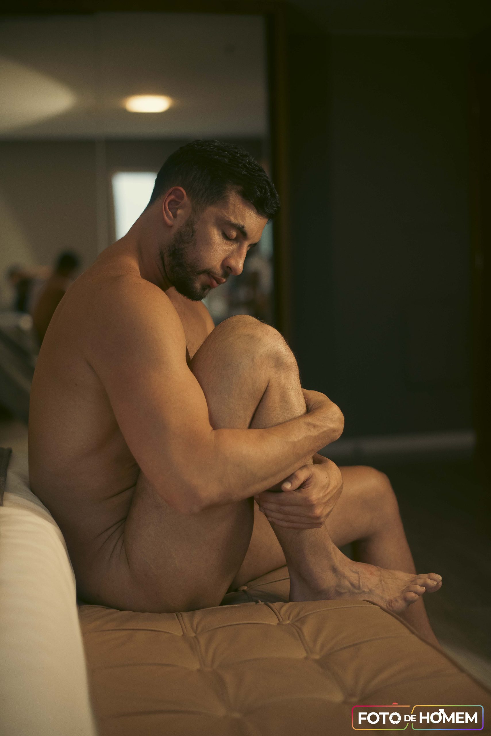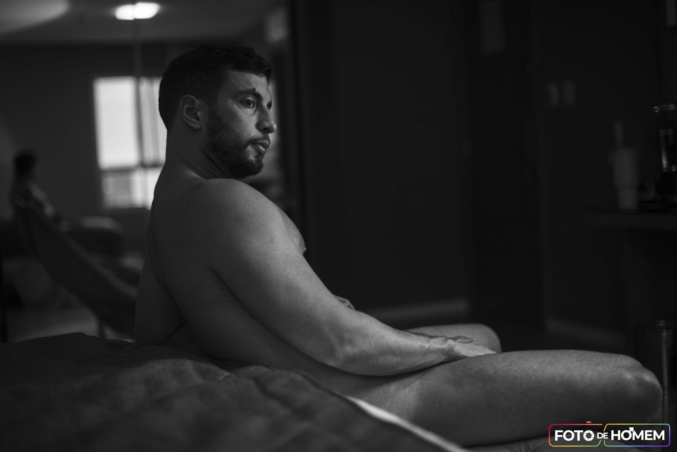 Foi nesse cenário de dúvidas que chegou o convite da Foto de Homem. A proposta: posar para um ensaio nu artístico. O primeiro sentimento foi a euforia — um misto de surpresa e validação. “Pensei: eles gostaram do meu perfil, acreditam que eu posso fazer parte dos ensaios.” Logo em seguida, no entanto, veio o receio. E se não estivesse à altura? E se as antigas inseguranças voltassem com força total?